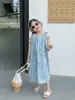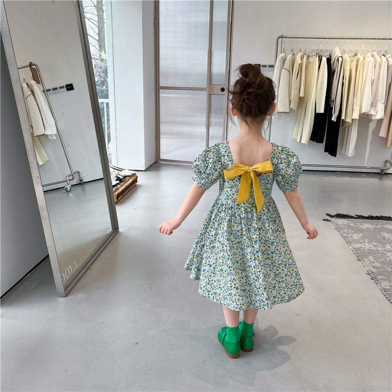 Vestido de niña, verano 2023, nuevo estilo, falda para niña, hermoso vestido de princesa informal con lazo floral para niños, moderno