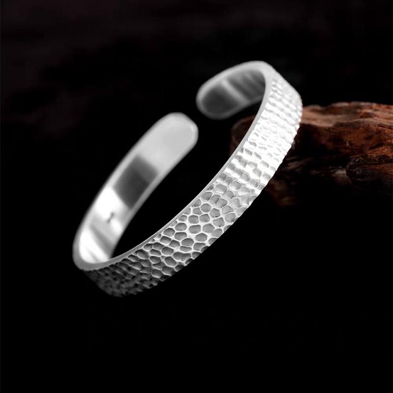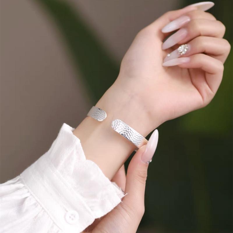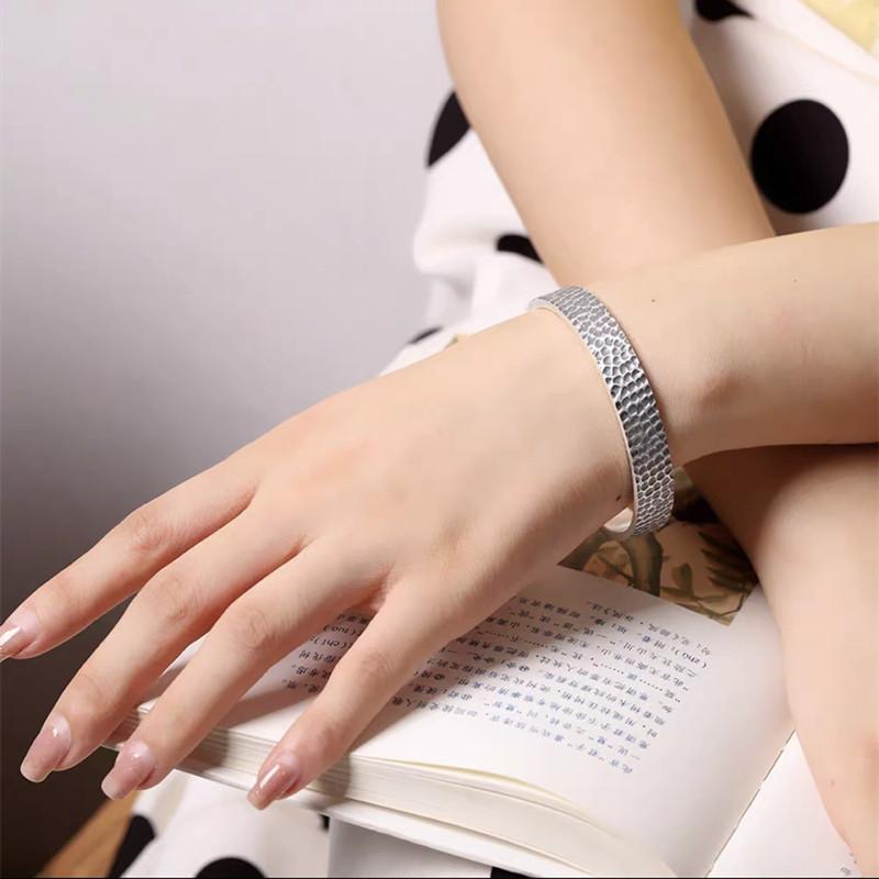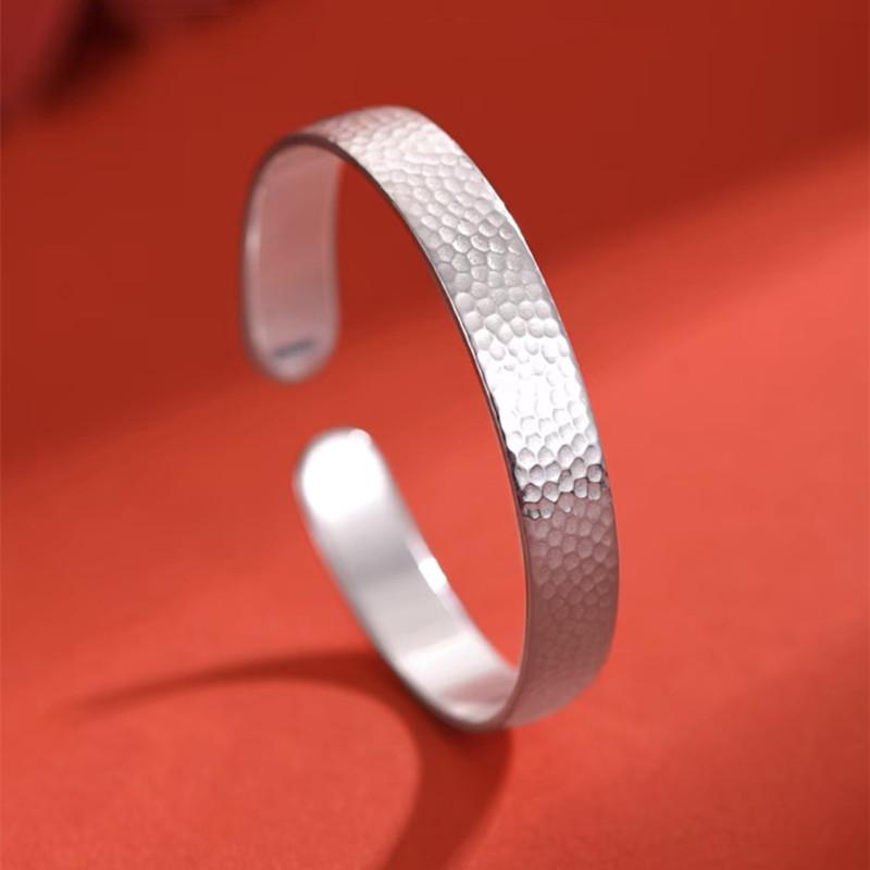 Shake Voice Live Cobre Blanco Plateado Cara Ancha Martillado Simple Brazalete Abierto Para Todo Joven Hecho a Mano Estilo Antiguo Pulsera para Mujer