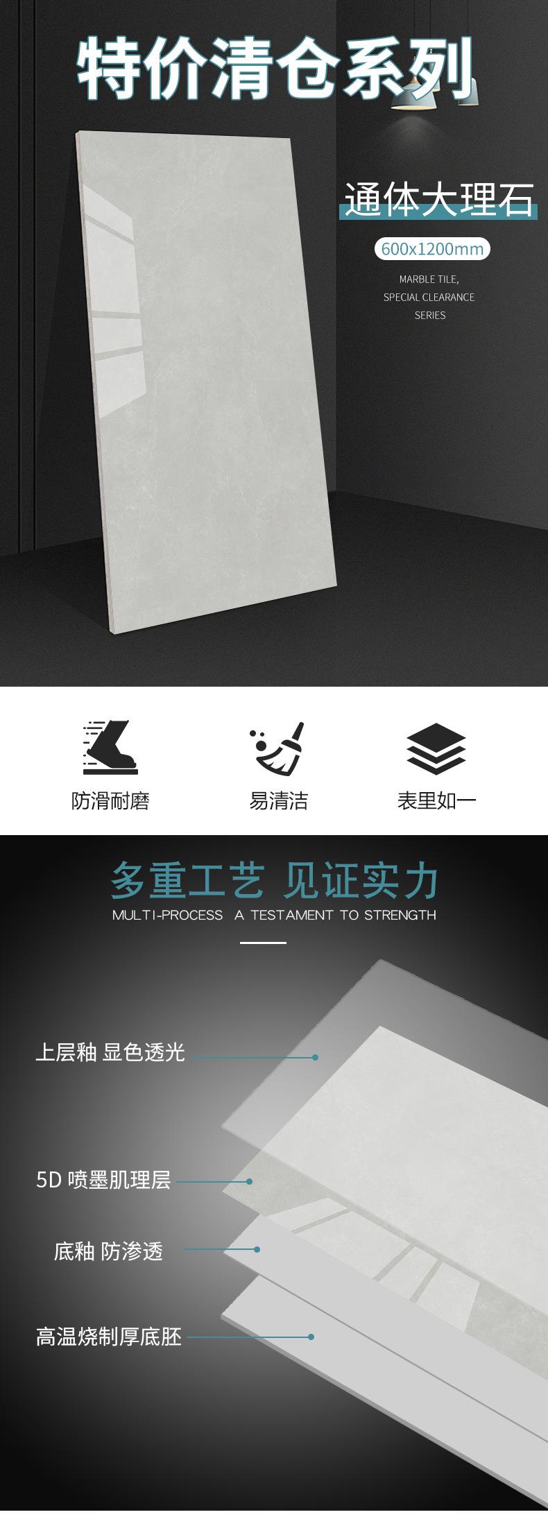 Azulejos de Mármol Integral Guangdong 600X1200 Sala de Estar Moderno Antideslizante Azulejos de Piso Tablero Grande Liquidación Especial Azulejos de Piso