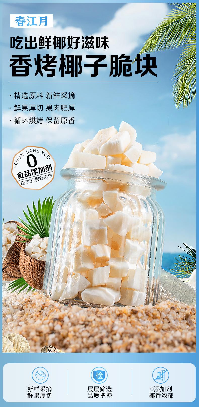 Chips Crujientes de Coco, Listo para Comer Sabor Original Coco Tostado, Especialidad de Hainan Snacks Horneados de Pulpa de Coco, Fruta Deshidratada al Por Mayor