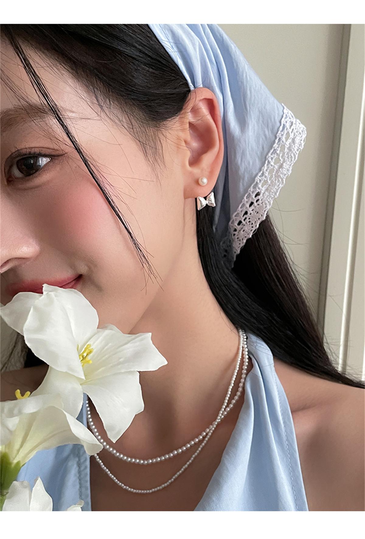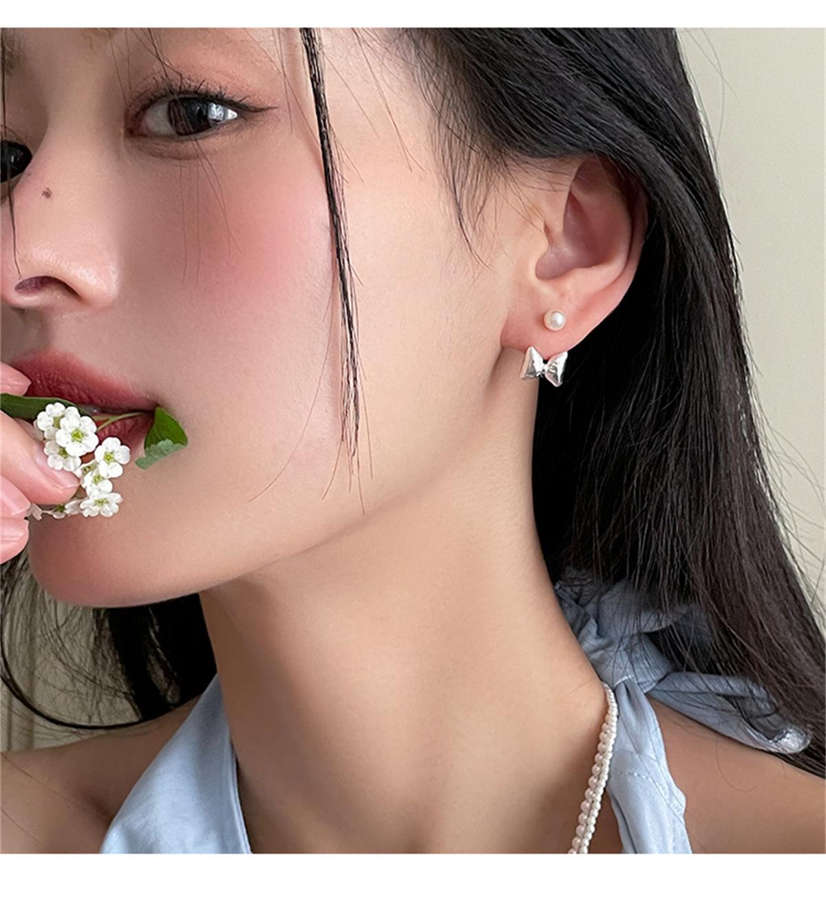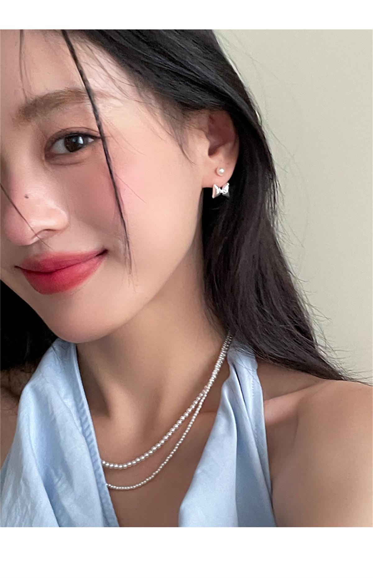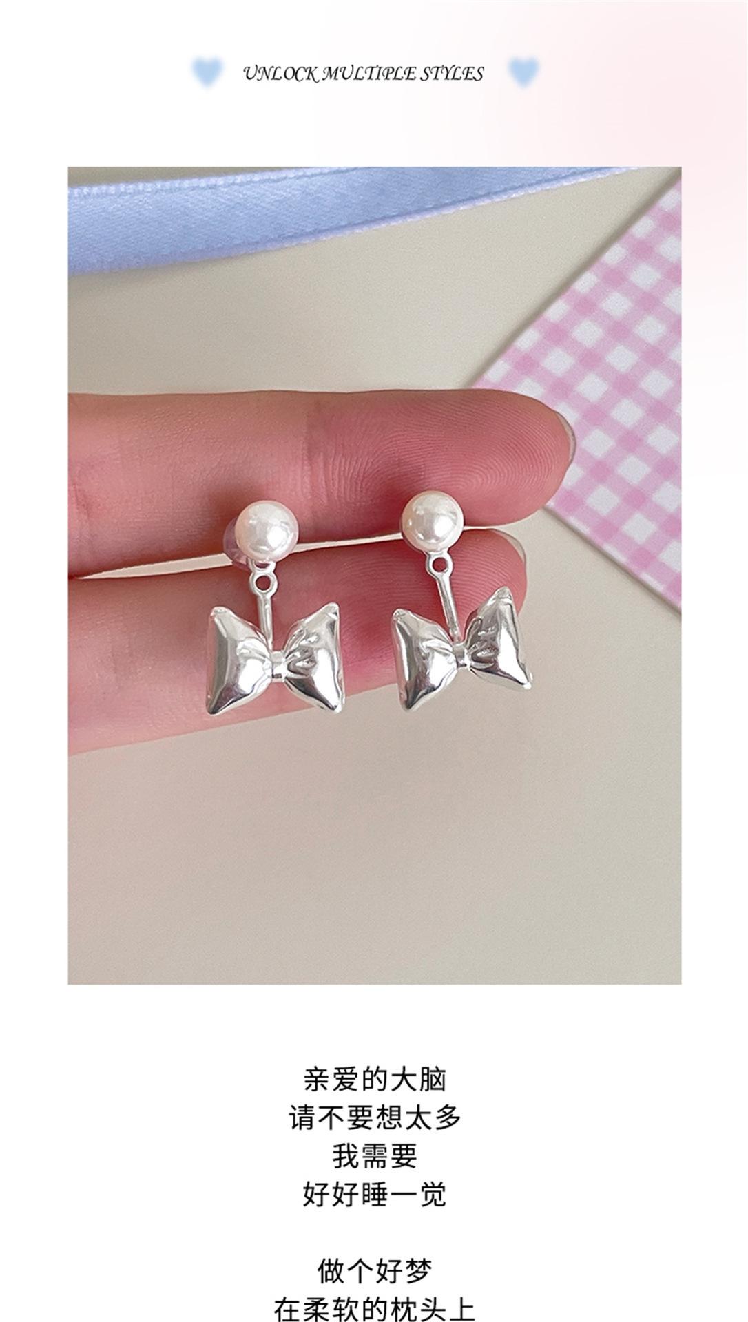 Pendientes de plata 925 con forma de lazo y aguja para mujer, con perlas dulces, ligeros, de lujo, de alta gama, para verano.