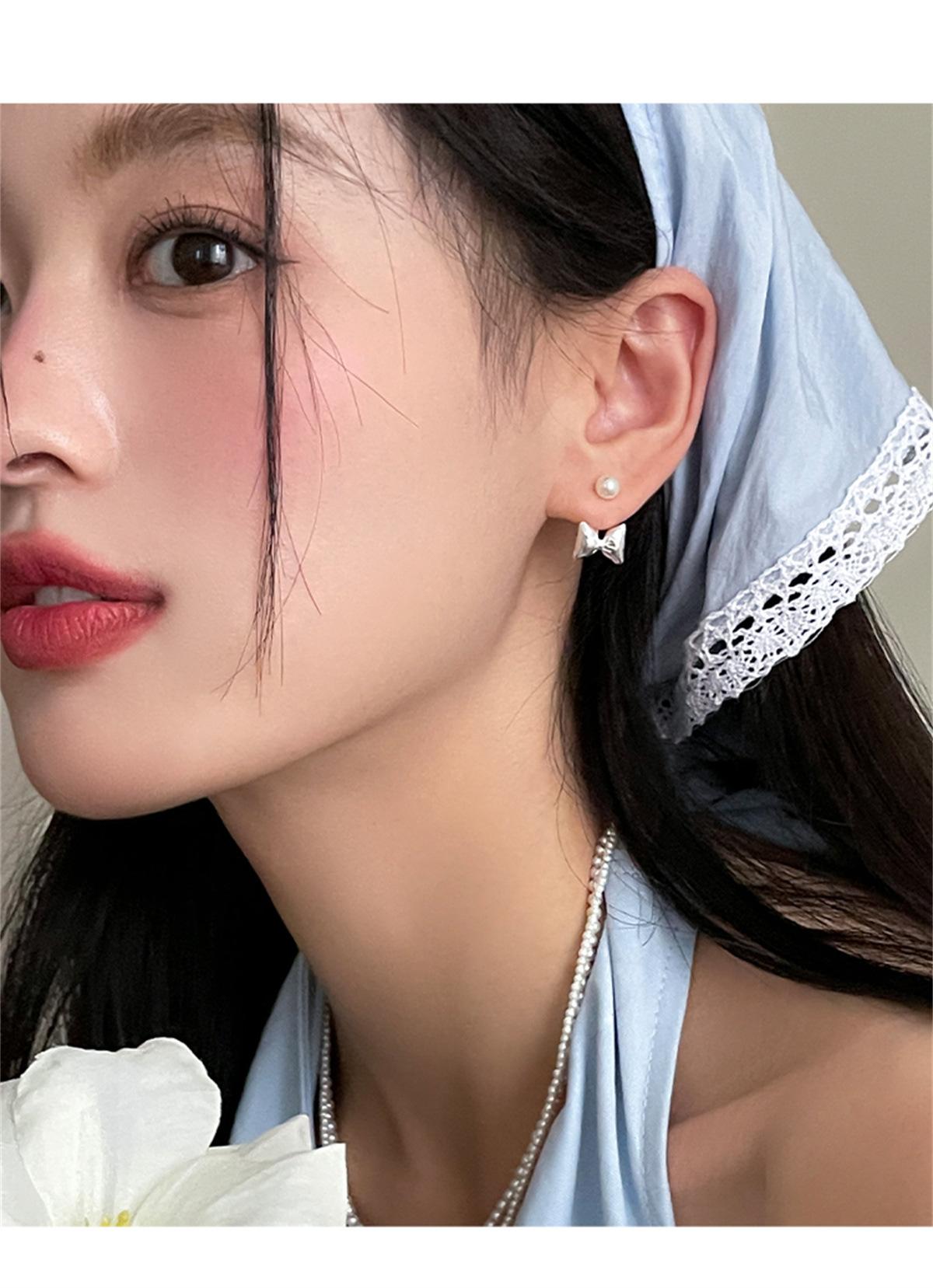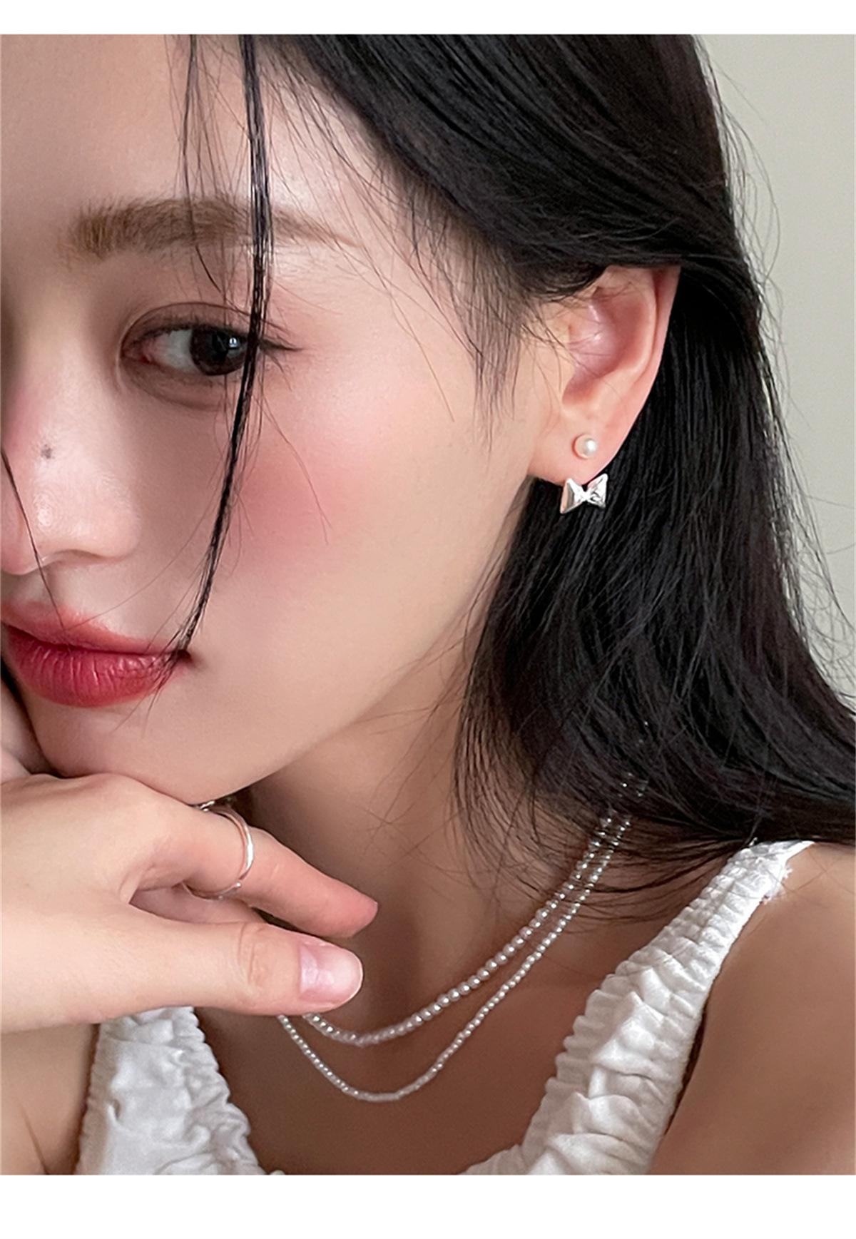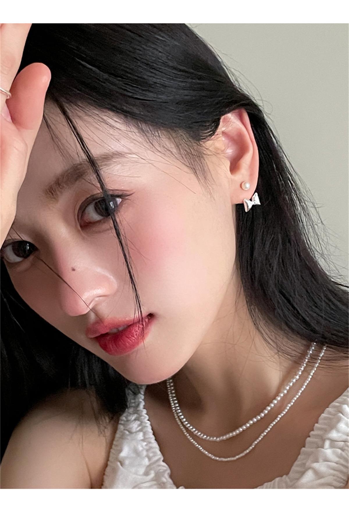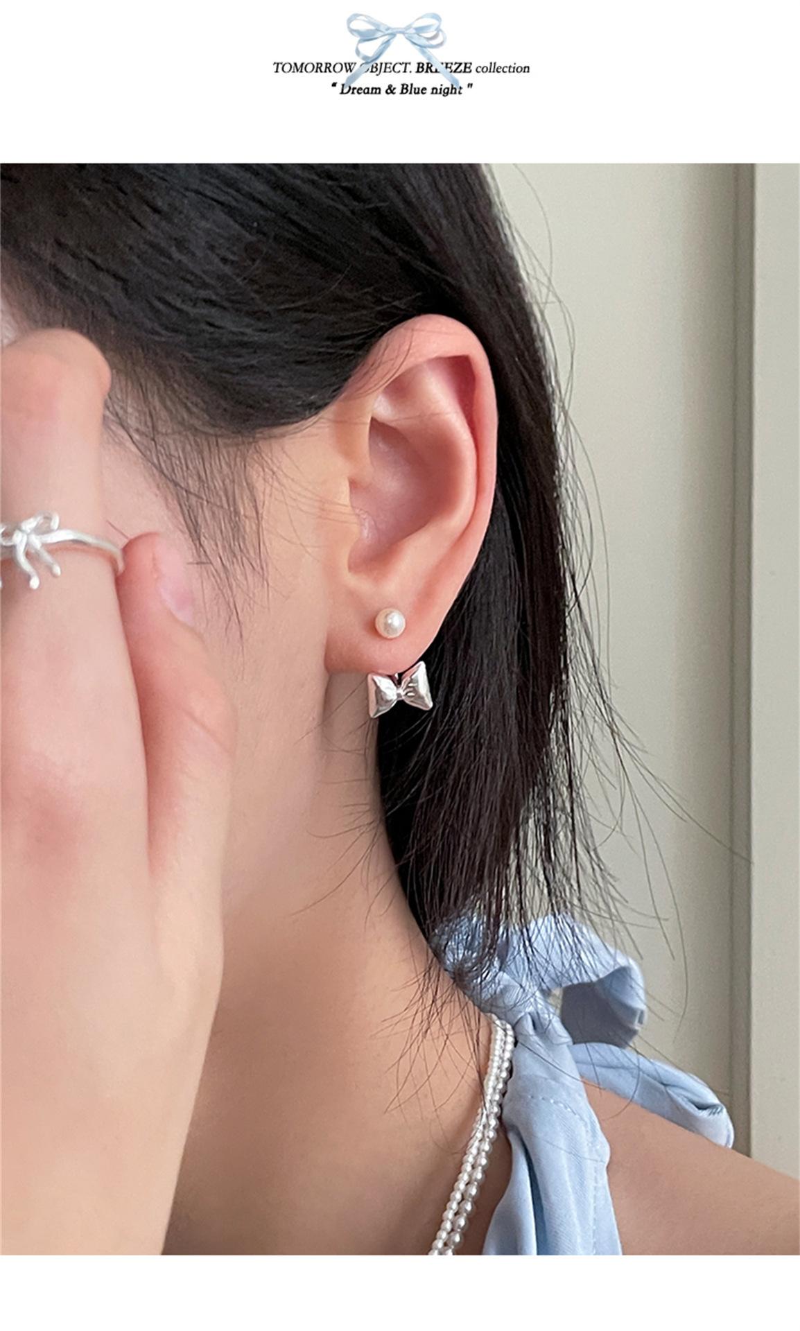Pendientes de plata 925 con forma de lazo y aguja para mujer, con perlas dulces, ligeros, de lujo, de alta gama, para verano.