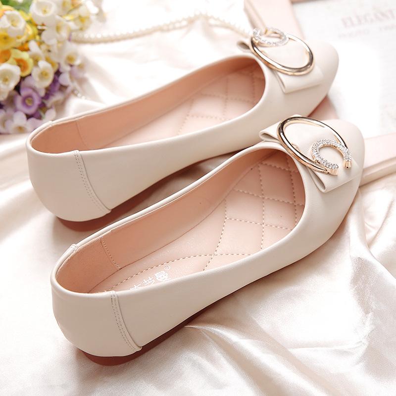Mocasines de Mujer 2025 Primavera y Otoño Nuevos Zapatos de Mamá de Suela Blanda Flats Versátiles Punta Redonda Baja Cuero Suave Zapatos Planos
