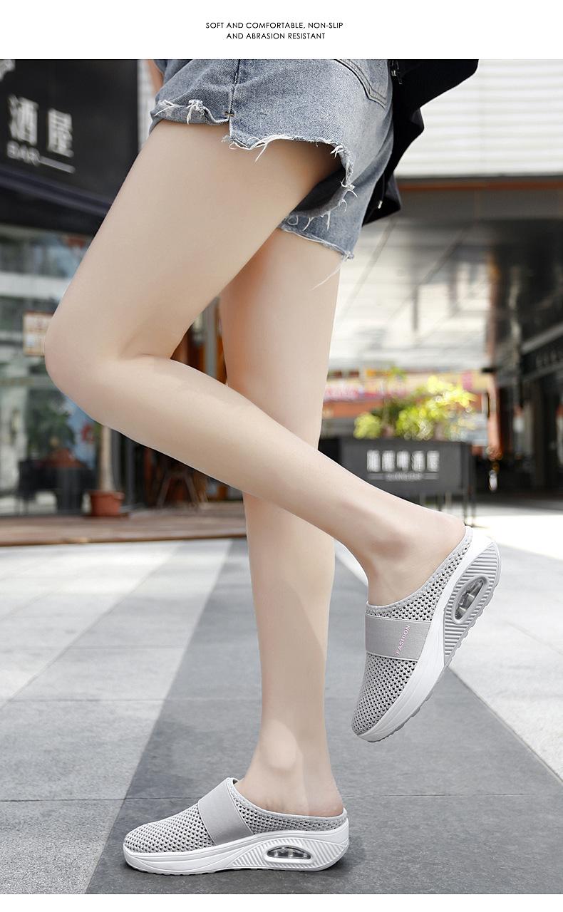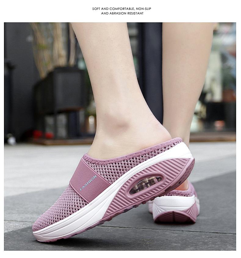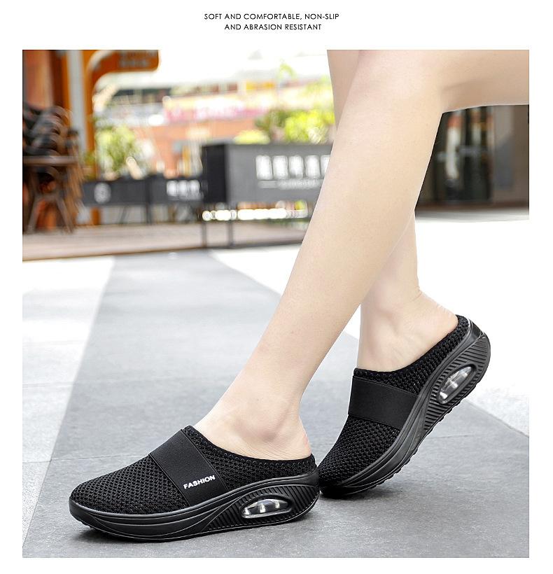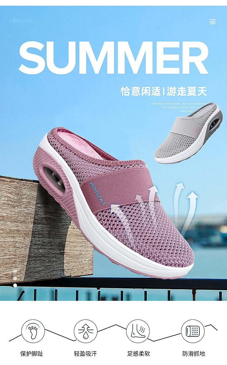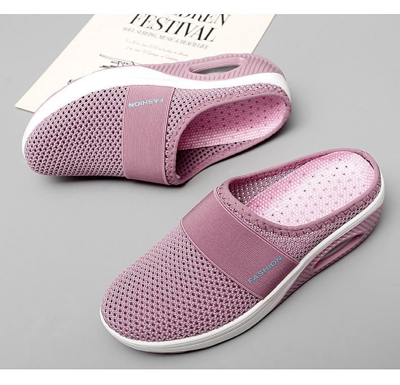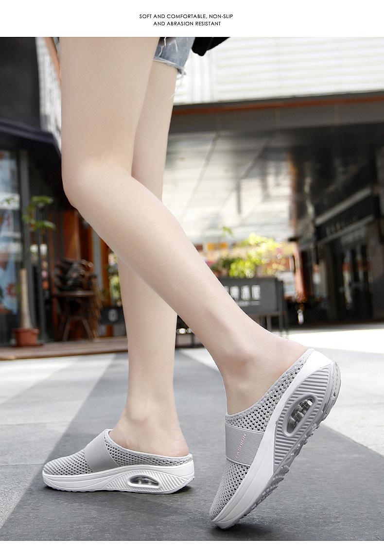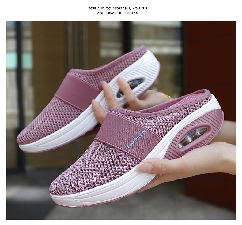 Zapatos de comercio exterior 2022, verano, europeos y americanos, talla grande, Baotou, medias zapatillas de mujer de malla, sin tacón, sin cordones, zapatos planos para mujer
