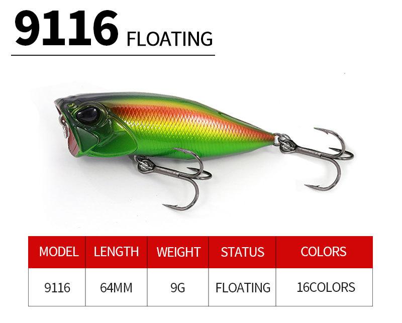 Señuelo Duro de Escalada Ola de Agua 64Mm9G Flotante Señuelo de Agua Cebo Pesca Lobina Boca Torcida Corriente Cebo 9116