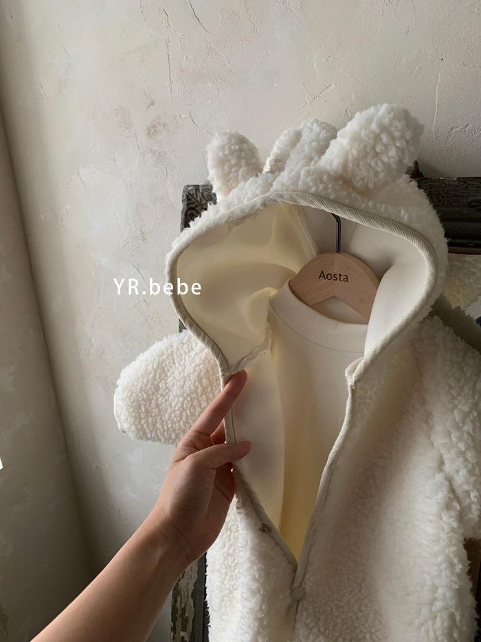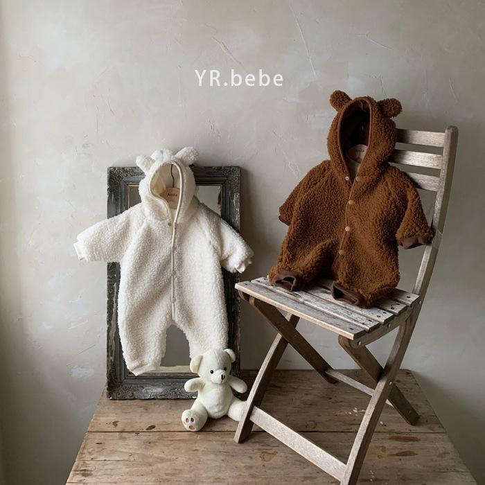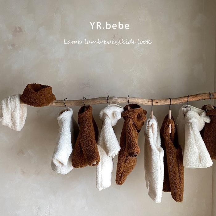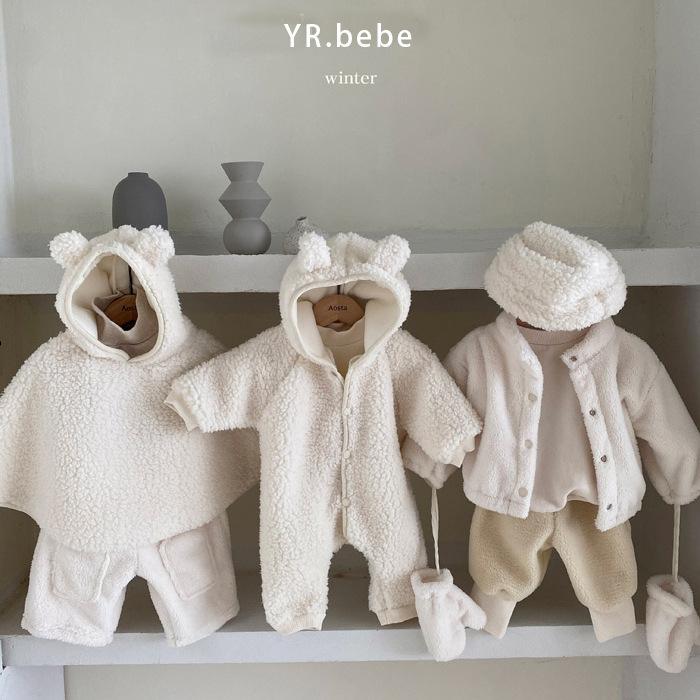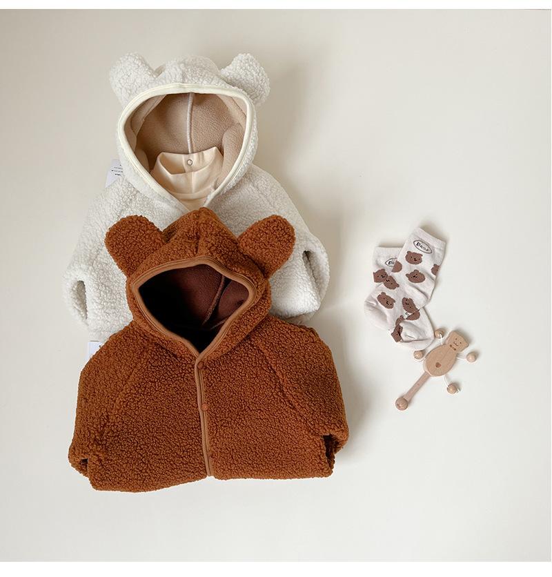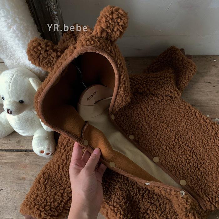 Nuevo mono de lana de cordero para bebé de estilo coreano en stock, grueso y cálido, ropa para niños y niñas de otoño e invierno.