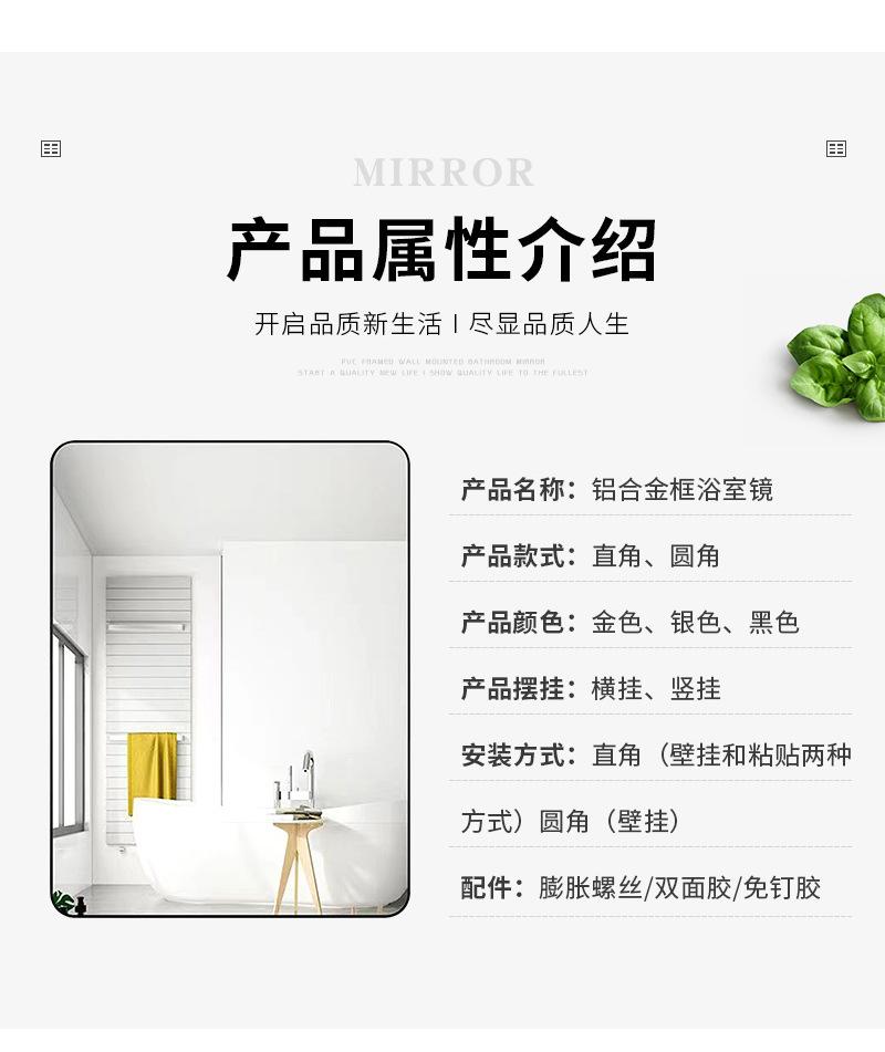 Espejo de Baño para Inodoro con Marco Espejo de Vidrio Moderno Simple Lujo Accesible Pared Autoadhesivo Colgante de Pared