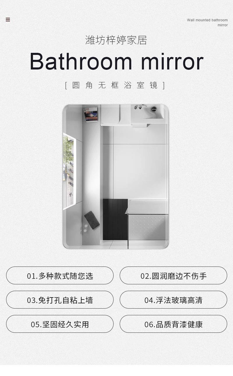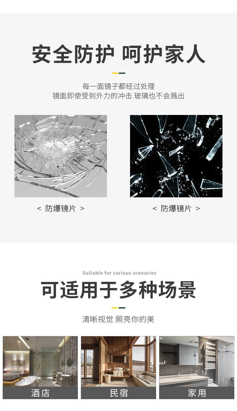 Espejo de Baño Adhesivo para Pared Espejo de Baño sin Marco Espejo de Maquillaje Seguridad a Prueba de Explosiones
