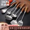Espátula de acero inoxidable con mango de madera, ideal para cocina, espátula doméstica, cuchara para sopa, pala para freír, olla caliente, colador, cuchara para arroz, disponible al por mayor