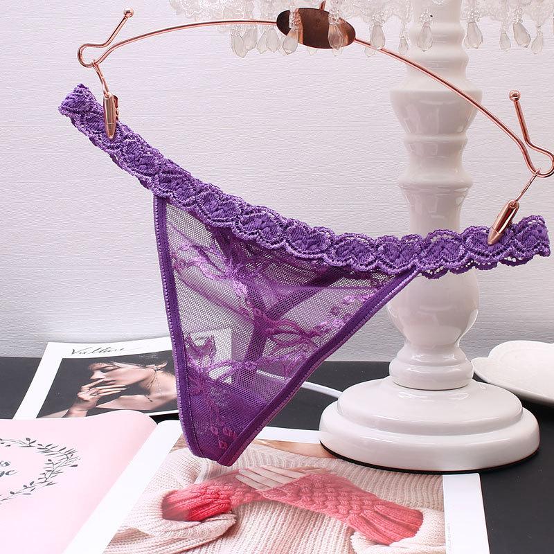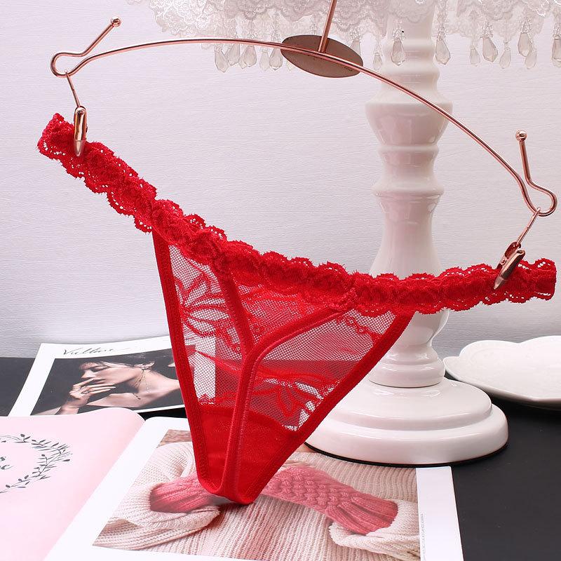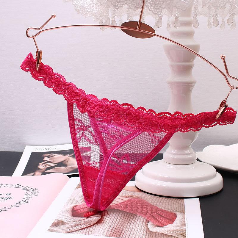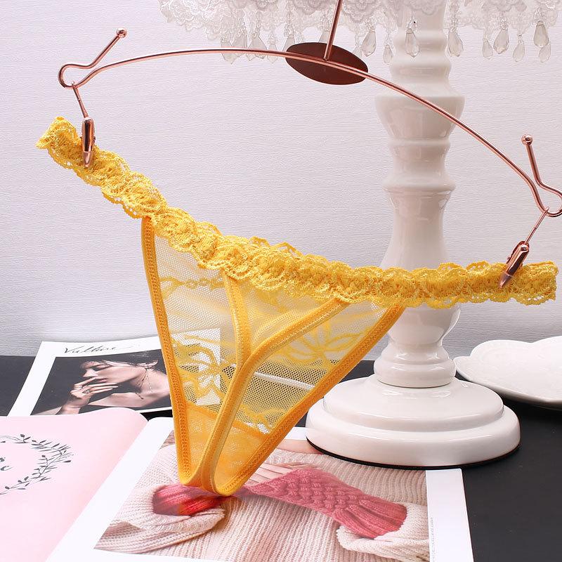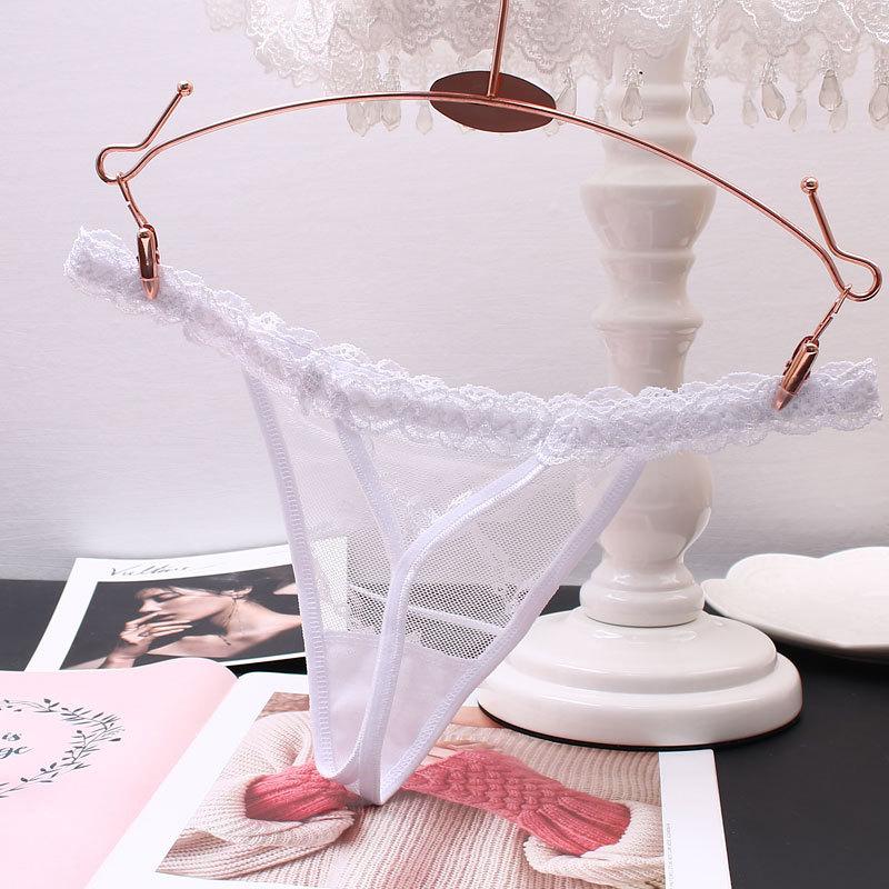 Tanga de estilo japonés para mujer, de encaje, sexy, transparente, sin costuras, tentación, color sólido, ropa interior de malla sexy de comercio exterior, pantalones de cintura baja.
