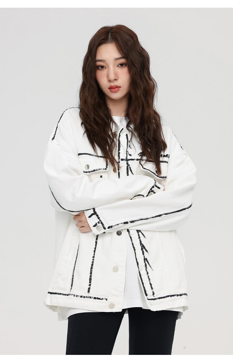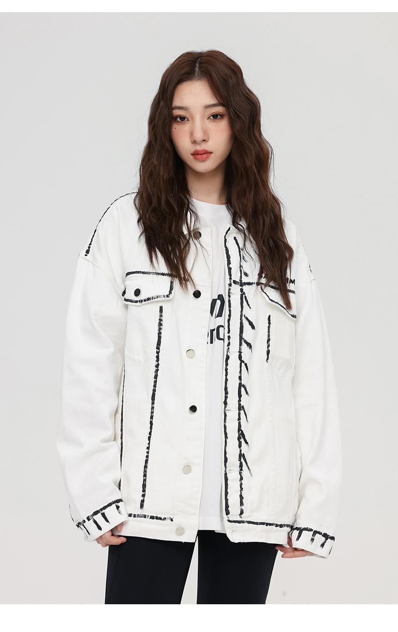 Esta moderna chaqueta vaquera es más holgada que las tallas normales, por lo que puede resultar más adecuada si eliges una talla más pequeña que tu talla original.