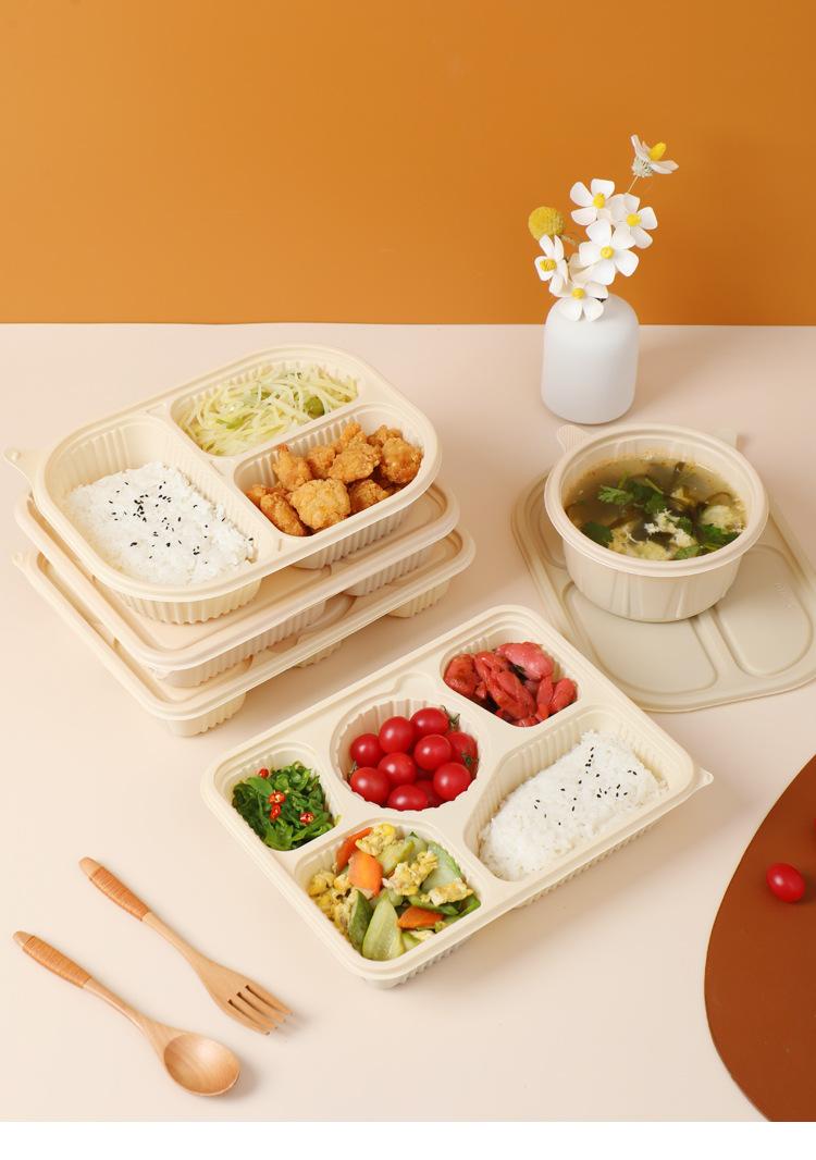 1200ml three-compartment lunch box 50 sets with lid [degradable], 1200ml four-compartment lunch box 50 sets wi...