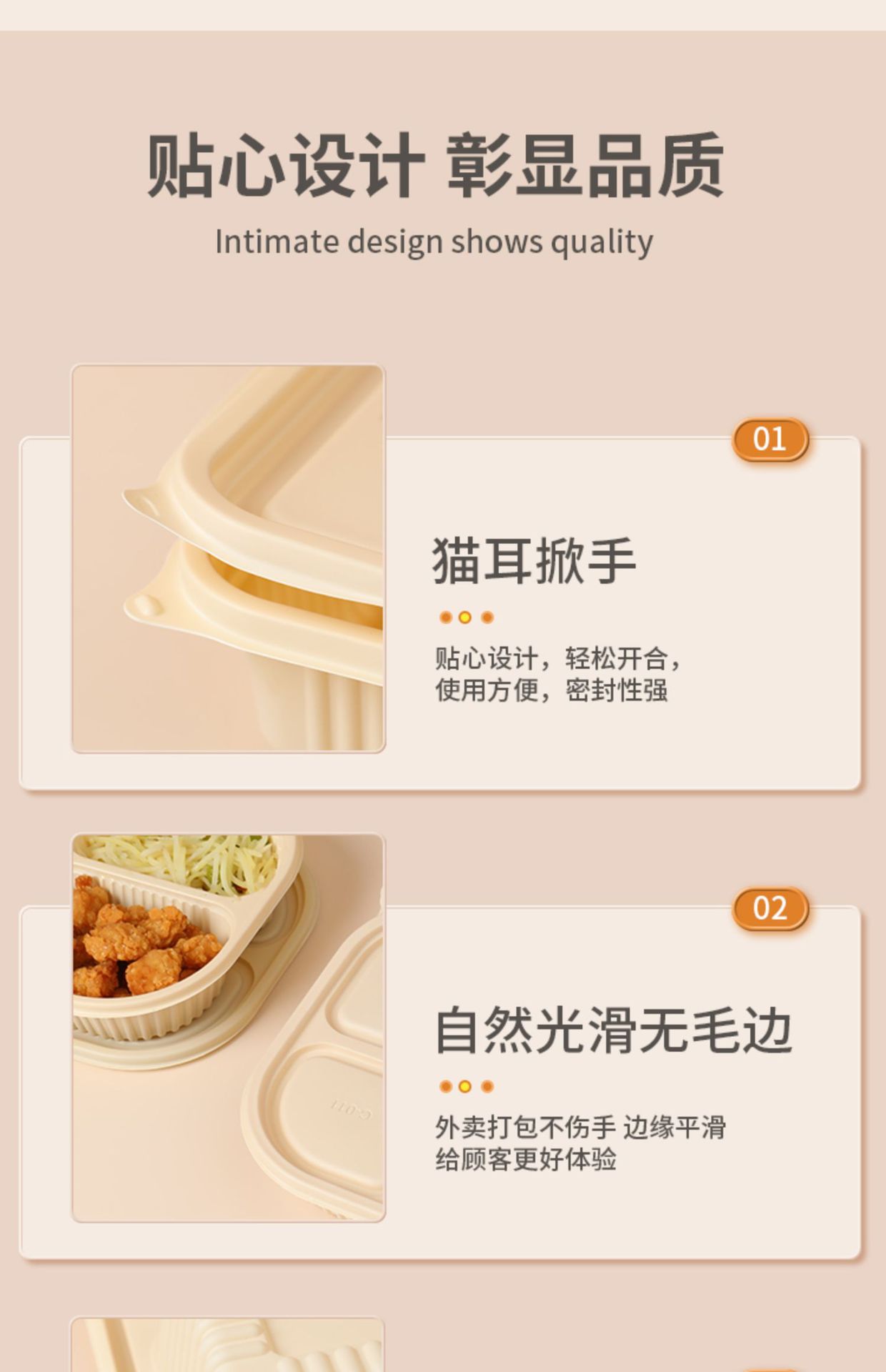 50 sets of 1000ml three-compartment lunch boxes with lids [degradable]