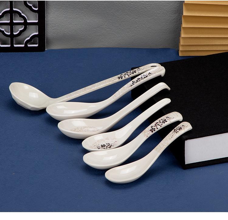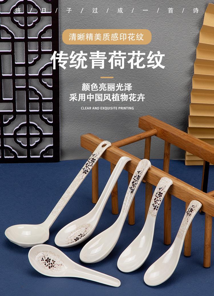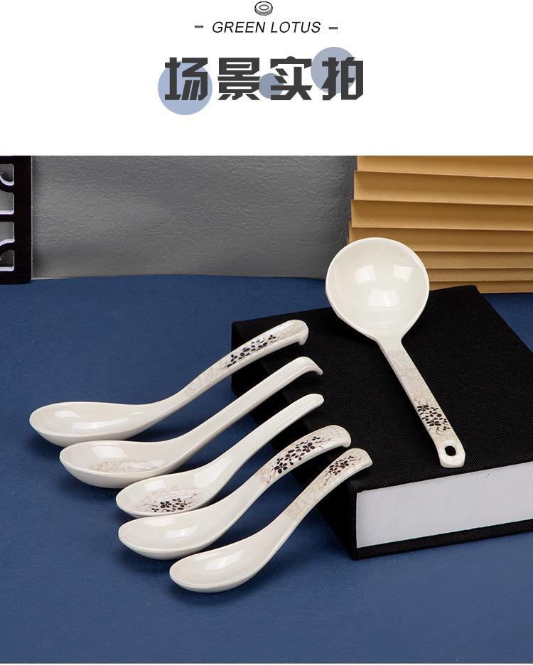 Cuchara de plástico de melamina de loto verde para restaurante de comida rápida, cuchara para sopa, cuchara para arroz, cuchara para mezclar, vajilla de imitación de porcelana