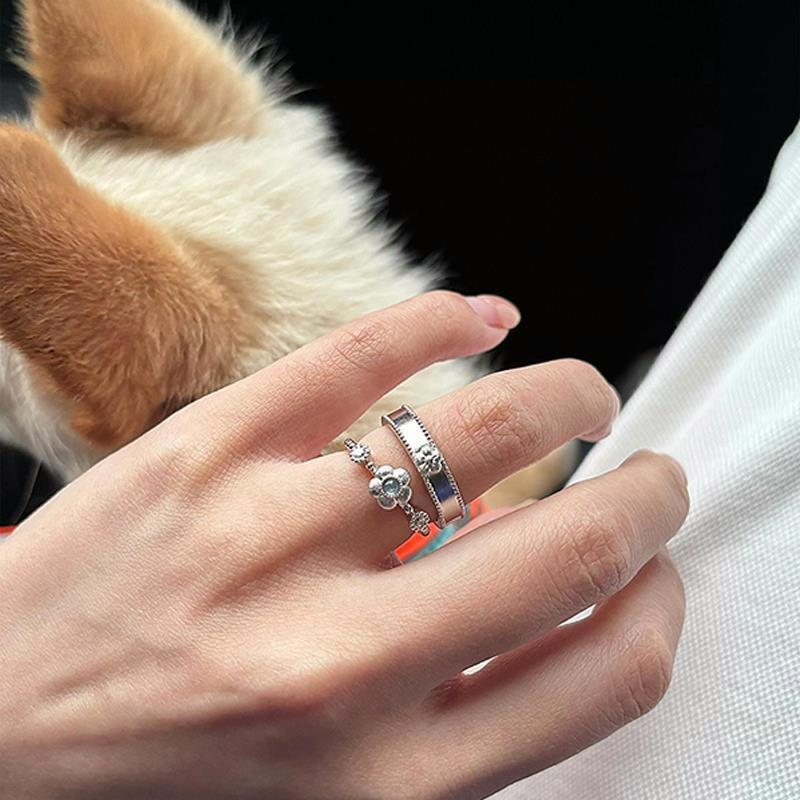 Anillo de flor cepillada con el mismo exquisito libro rojo, diseño de mujer, anillo de cola con sentido, industria pesada, único, mejor amigo de la pareja