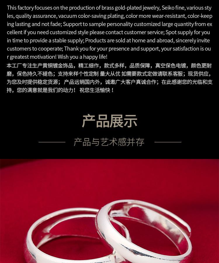 Anillo de pareja brillante plateado para hombre y mujer anillo de pareja joyería al por mayor en vivo