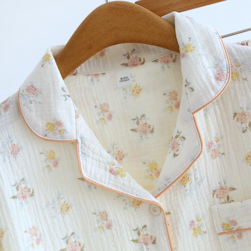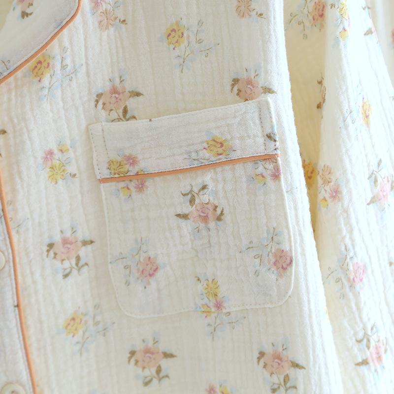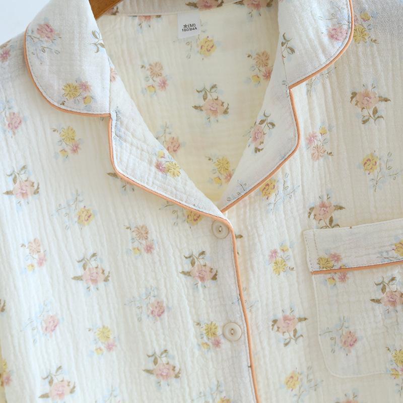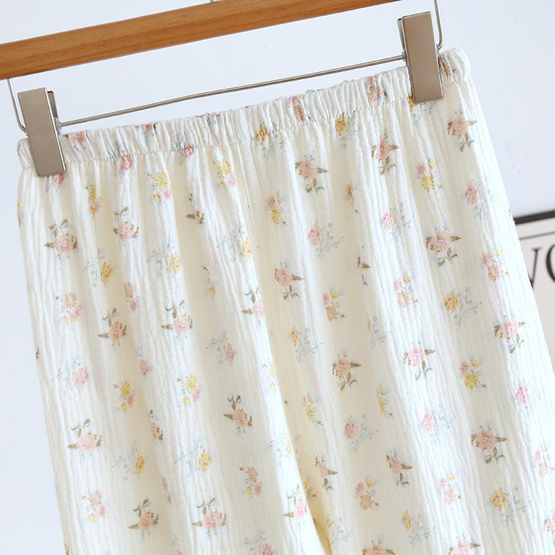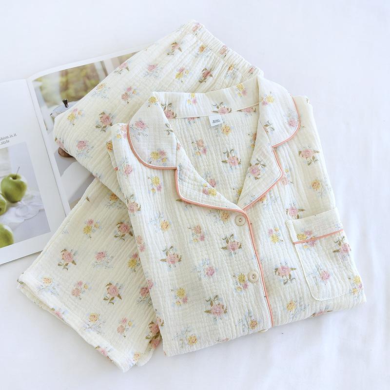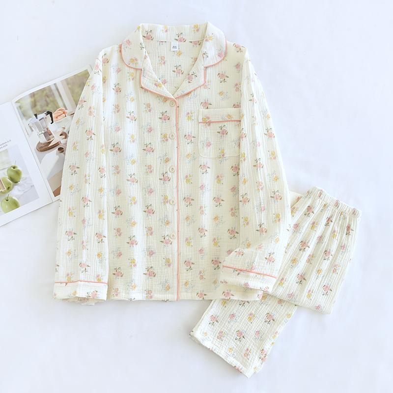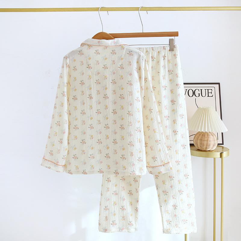 Compra Pantalones de Gasa de Algodón de Manga Larga para Mujer Traje de Pijama Primavera y Otoño Verano Solapa Cárdigan Casual Suelto Delgado Ropa para el Hogar al por mayor en Joom.pro