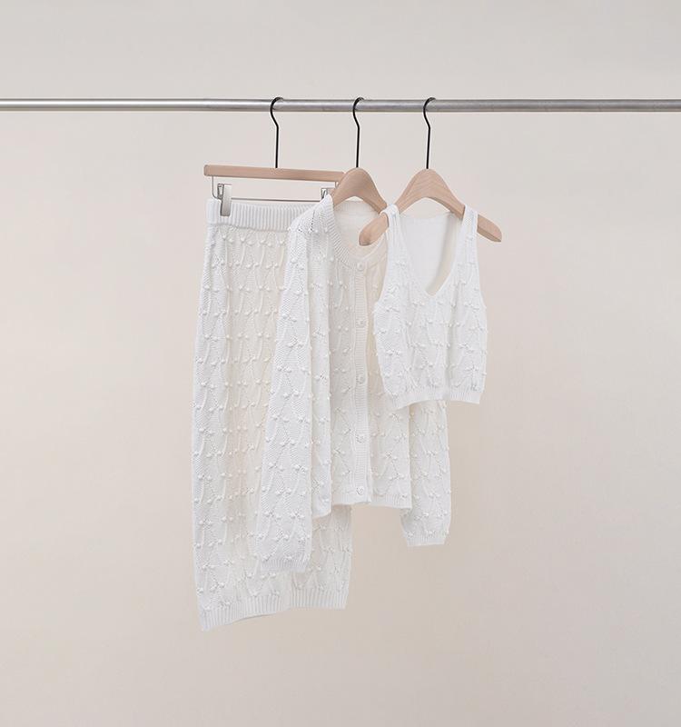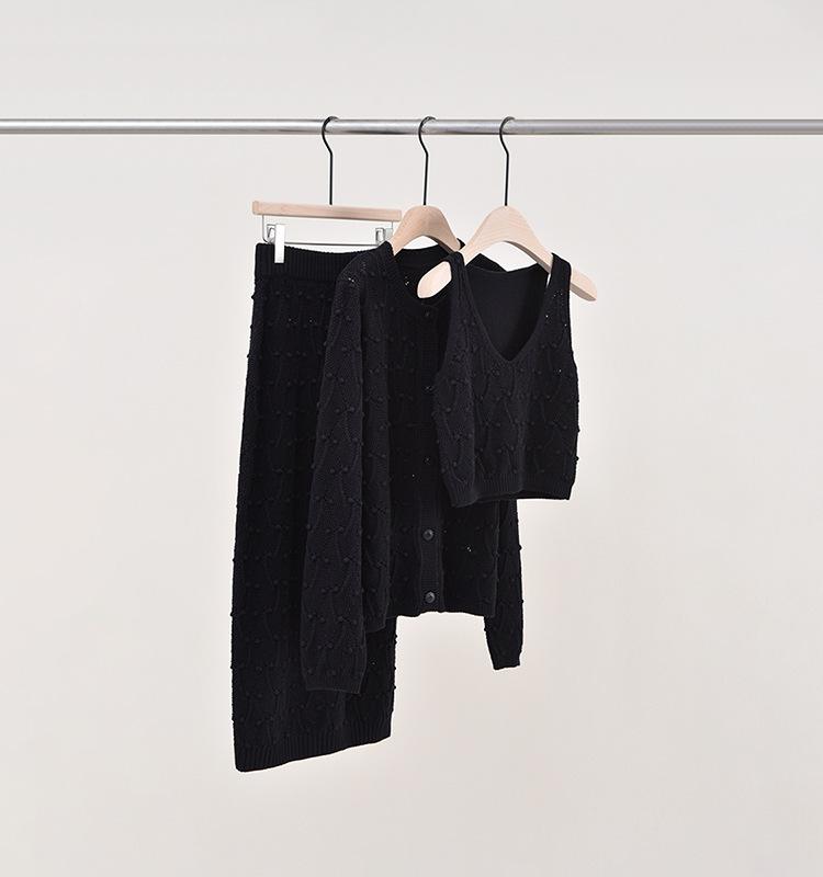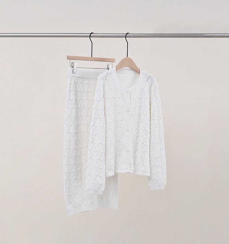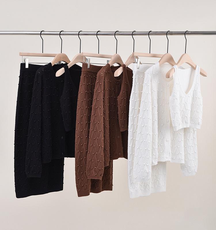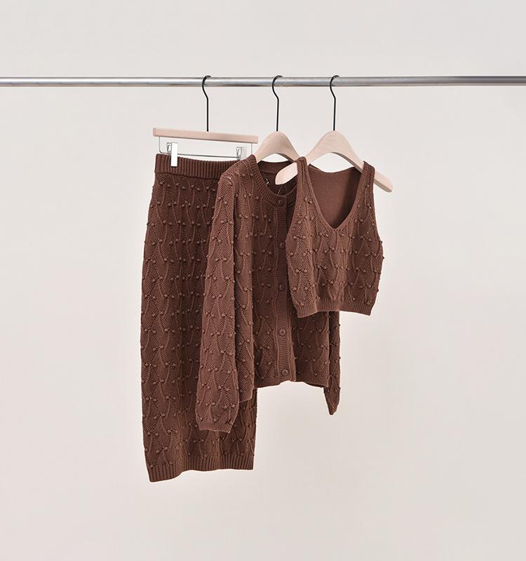 Cárdigan regular ligeramente ancho, chaleco ajustado, falda lápiz