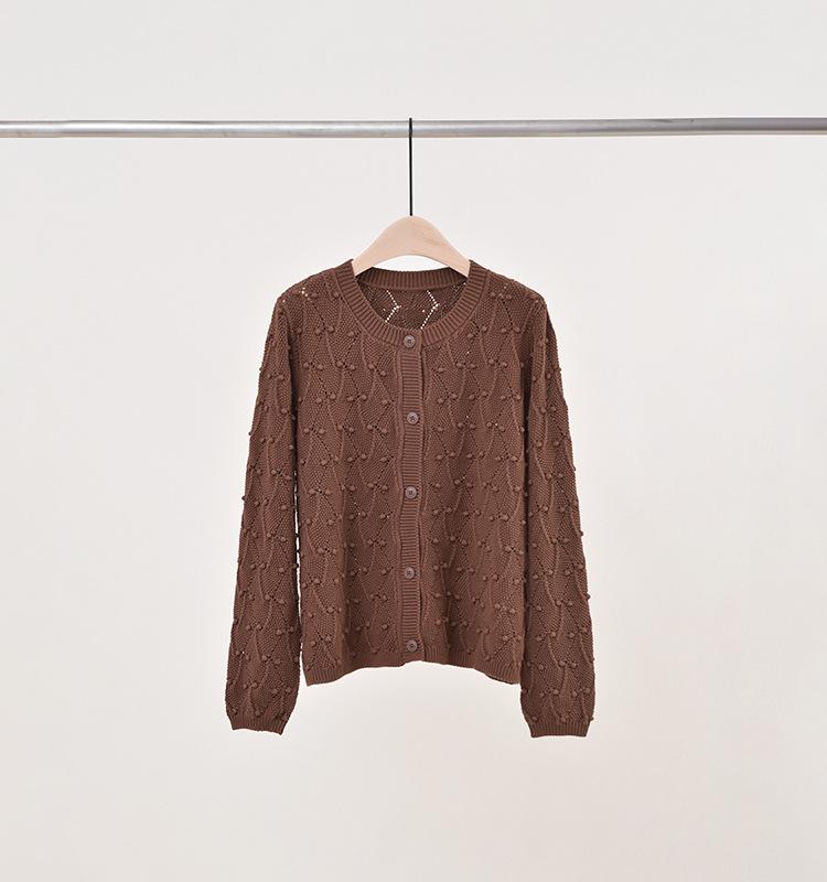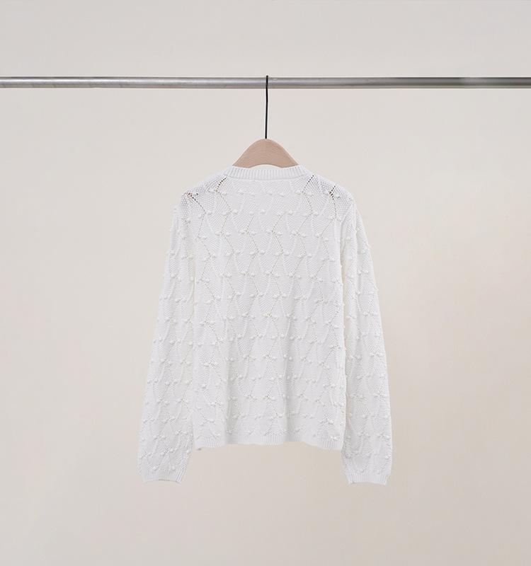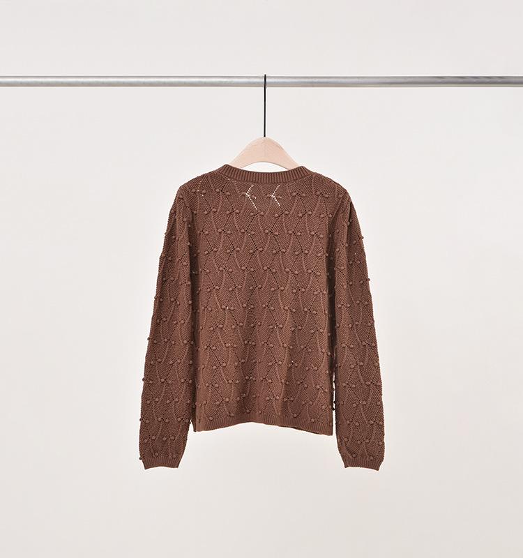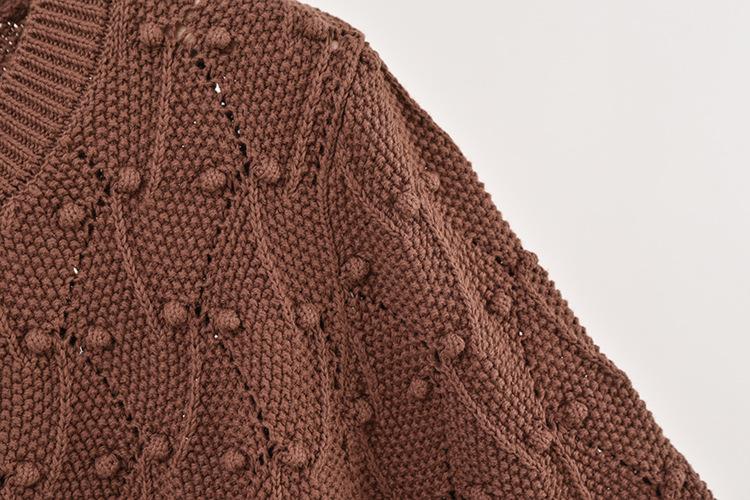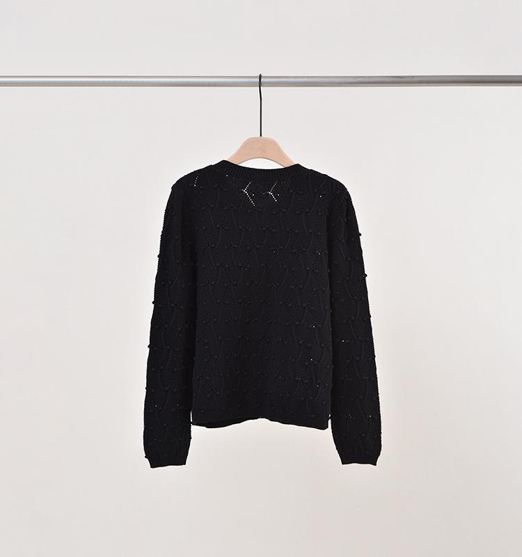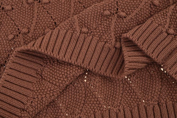 La textura con patrón de diamante está salpicada de bolas de hilo tejido, lo que es rico en capas.