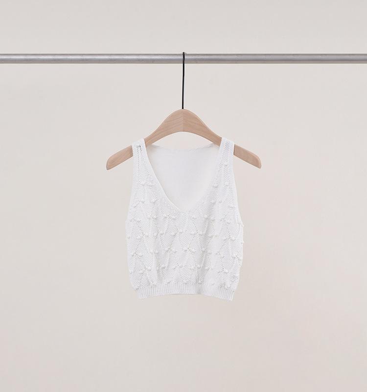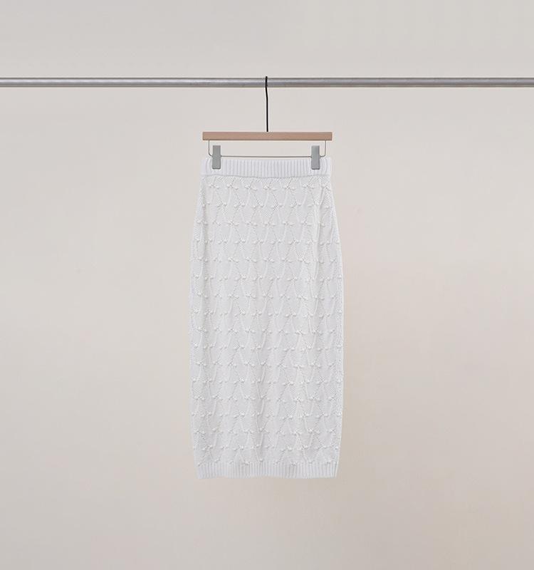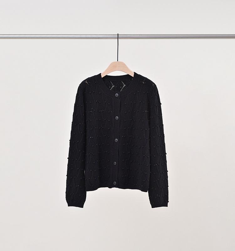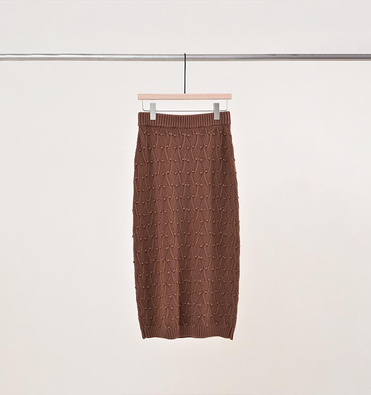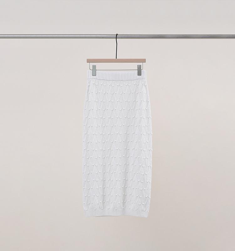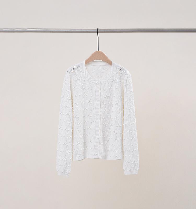 La textura con patrón de diamante está salpicada de bolas de hilo tejido, lo que es rico en capas.