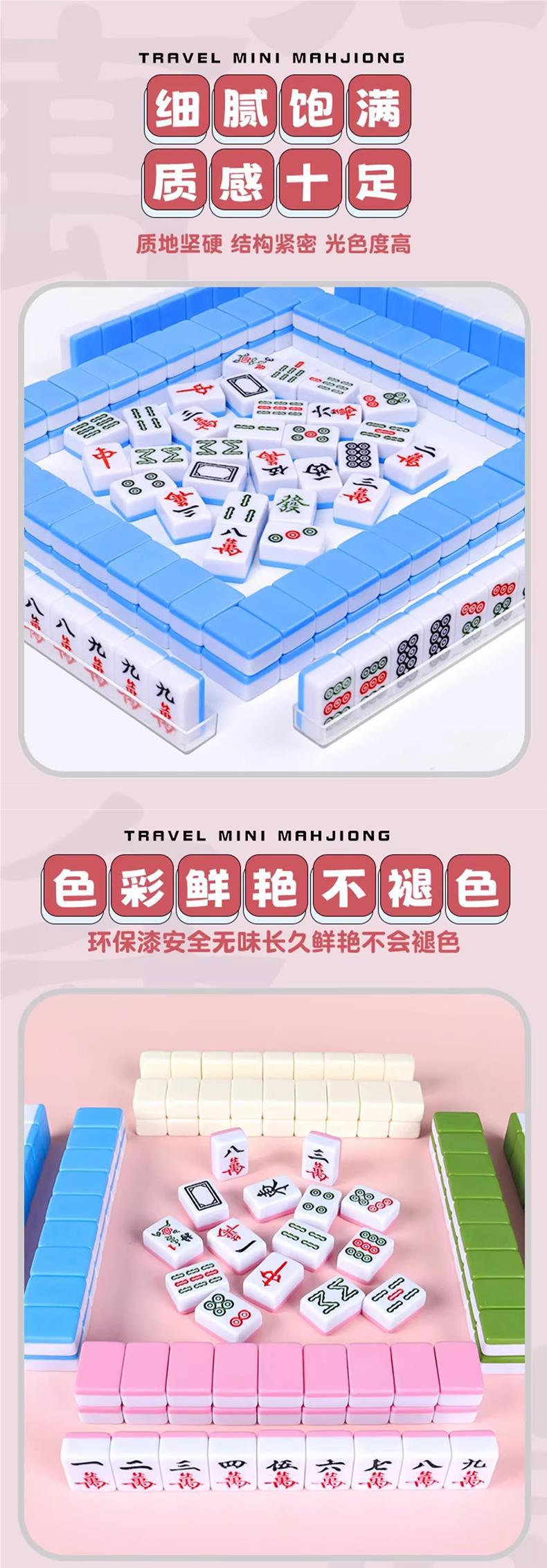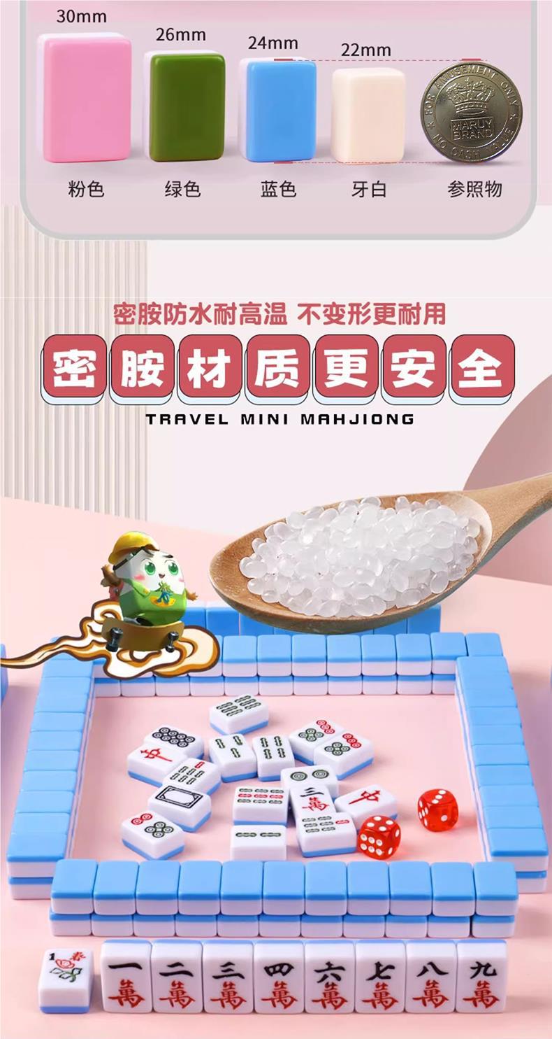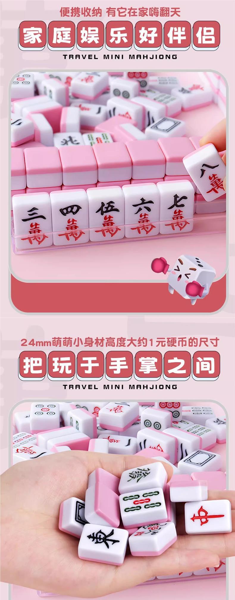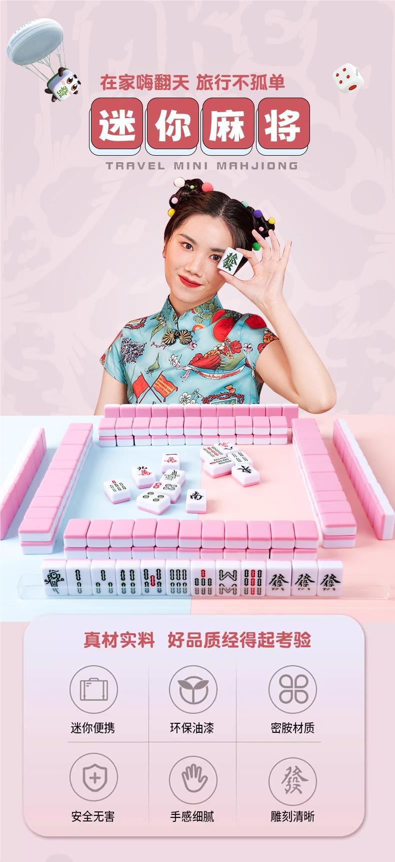 Mahjong de tamaño pequeño, mini, portátil, para viajes, internet, popular, mini dormitorio, dormitorio, hogar, pequeño, frotamiento manual, cartas de Mahjong.