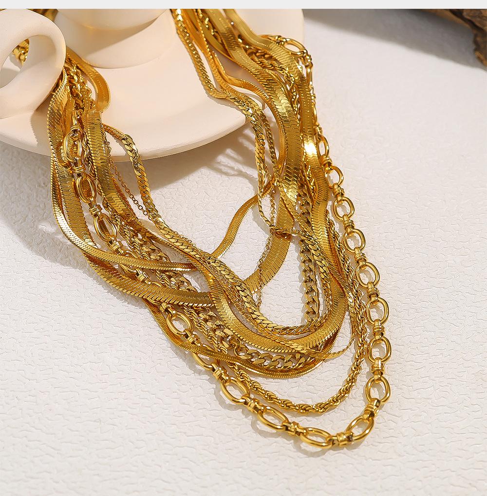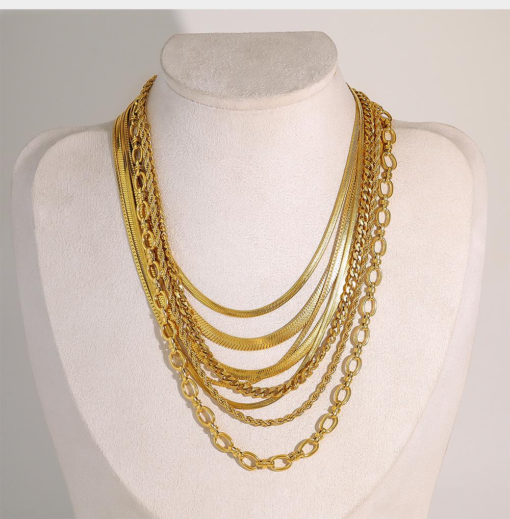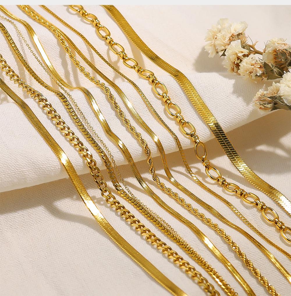 Collar clásico sencillo estilo INS, joyería chapada en oro de 18 quilates, cadena de serpiente plana, cadena torcida, collar de doble capa para mujer