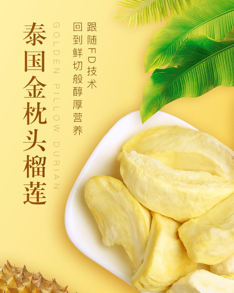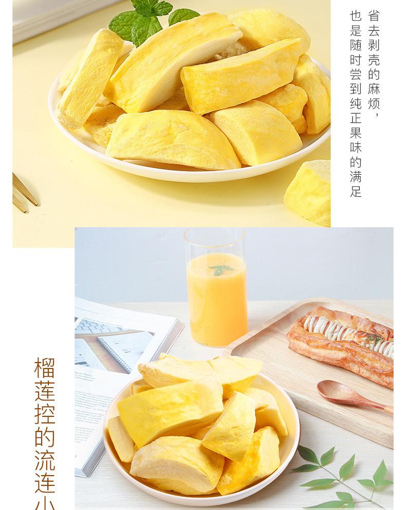 Snacks de hierbas, durian seco, 30 g, fruta seca, tecnología liofilizada, almohada dorada, durian seco, venta al por mayor