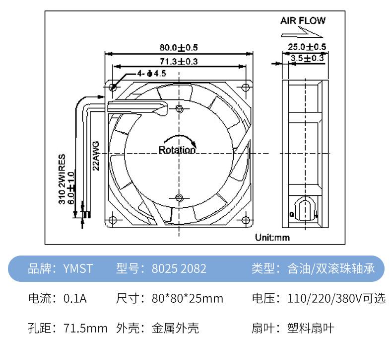 Ventilador axial pequeño directo de fábrica AC AC 8 025 220V 8CM ventilador de refrigeración con doble cojinete de bolas