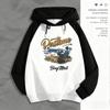 Sudadera para hombre, abrigo de otoño con costuras en contraste, jersey estilo americano, retro, cuello redondo, manga raglán, top informal holgado