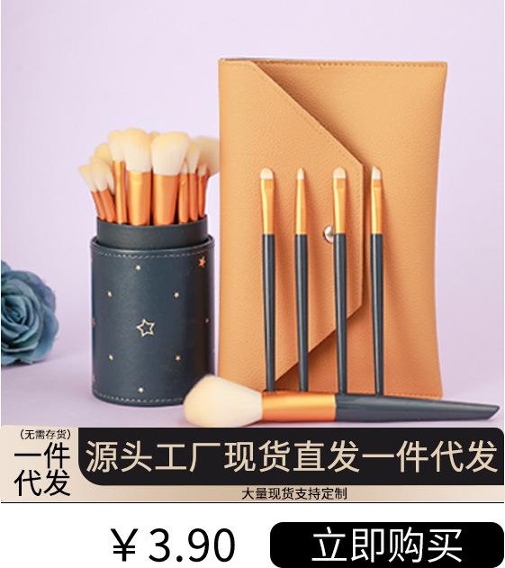 Orange 12-piece makeup brush set + opp bag [drop shipping], Orange 12-piece makeup brush set + brush bag [larg...