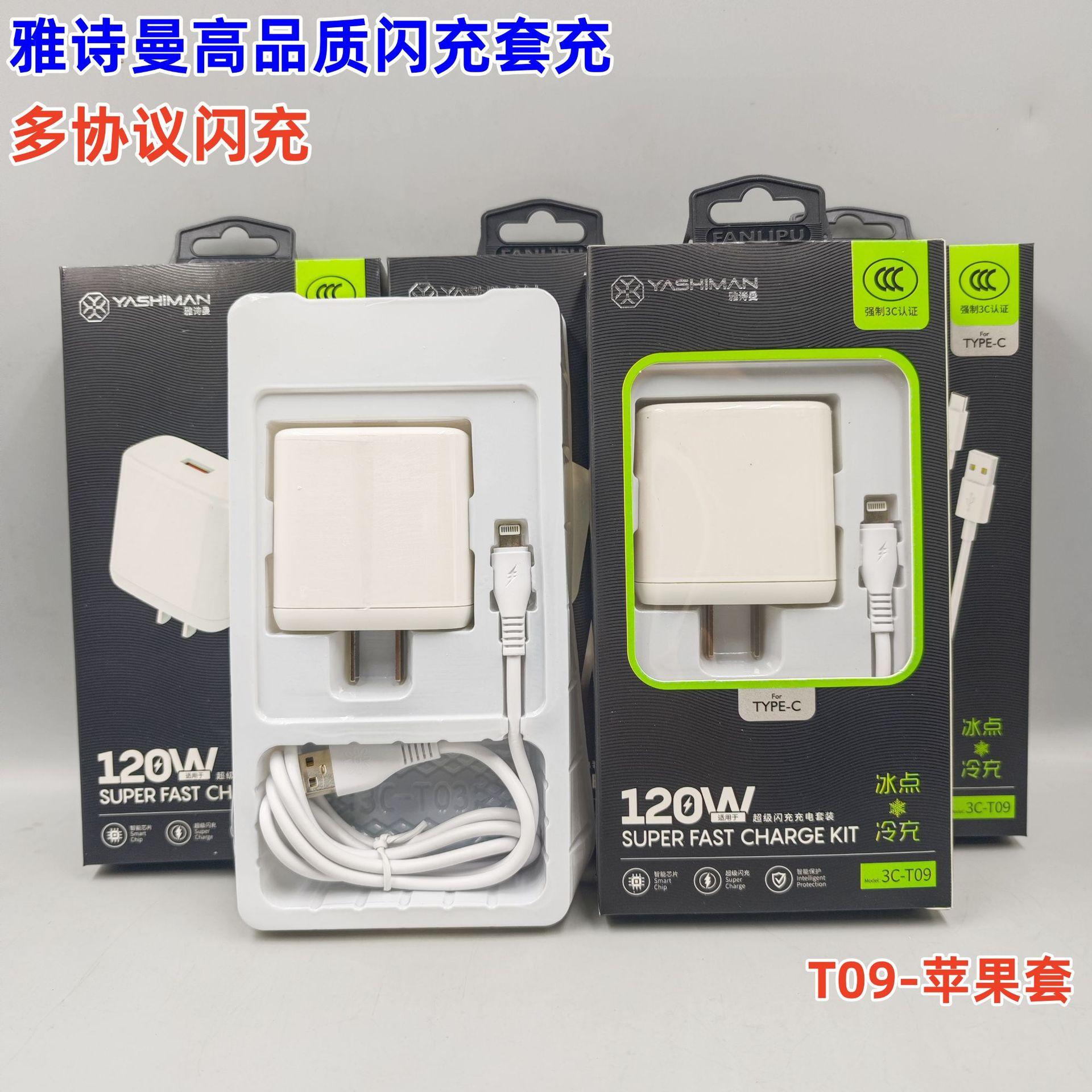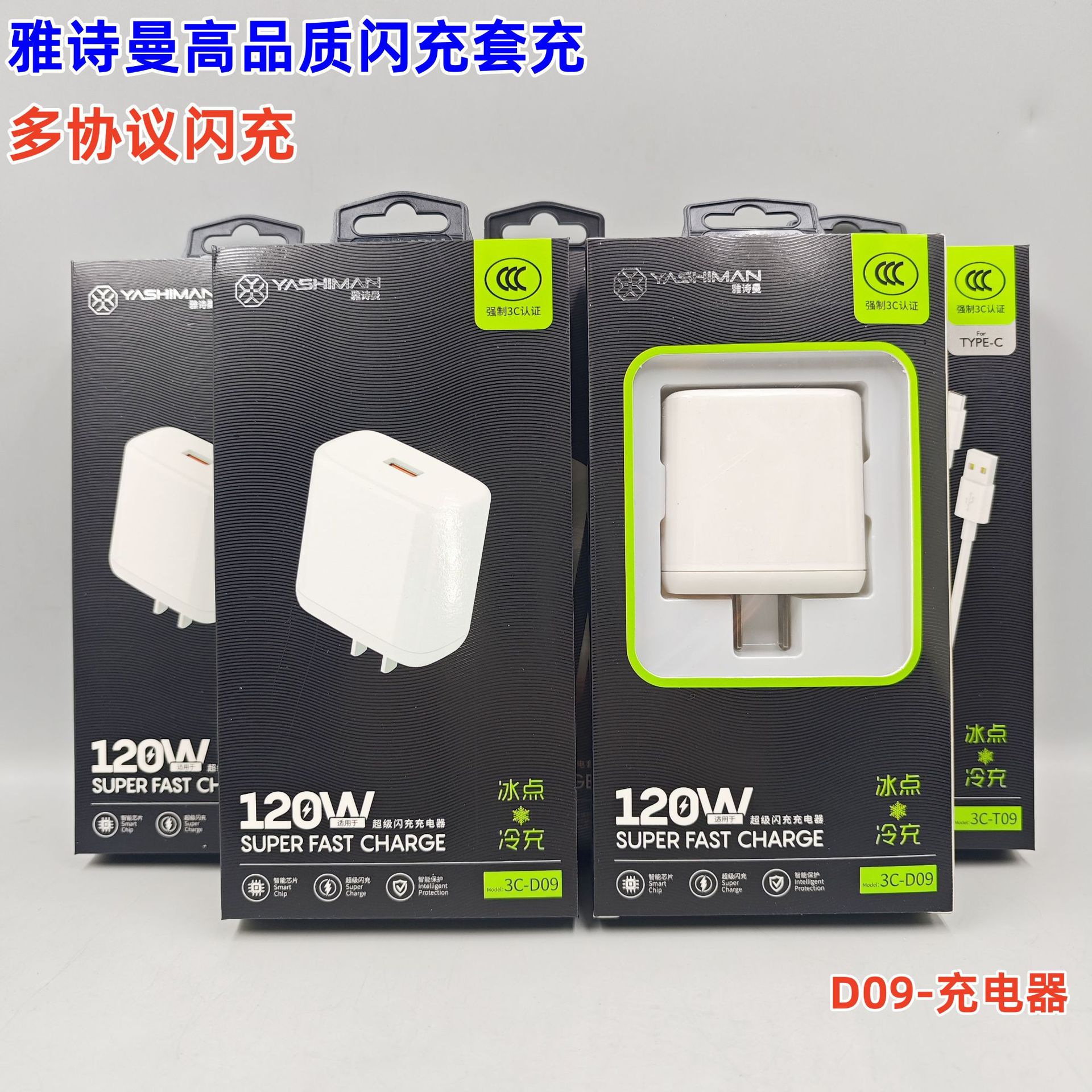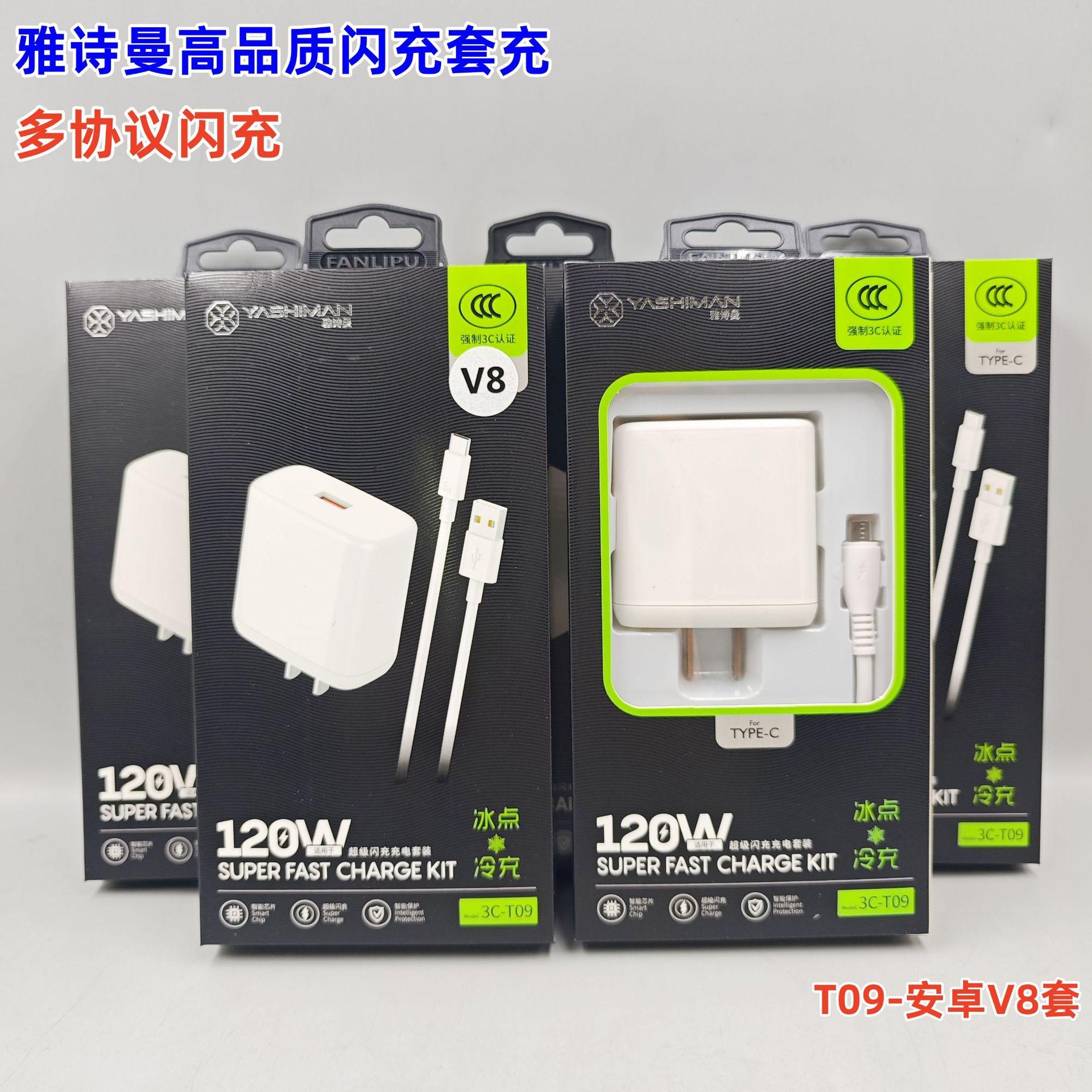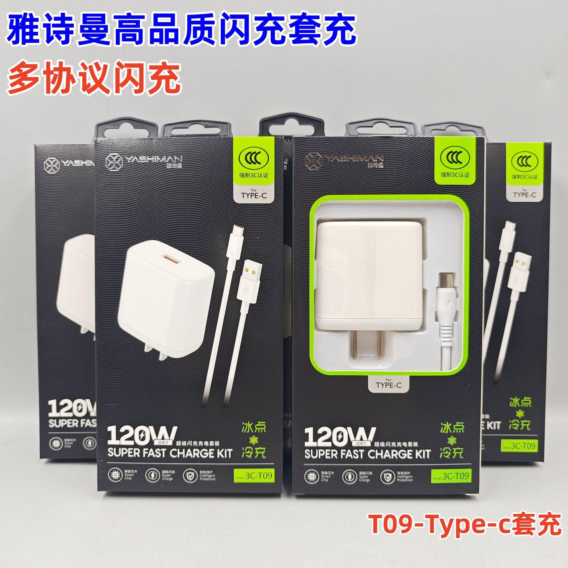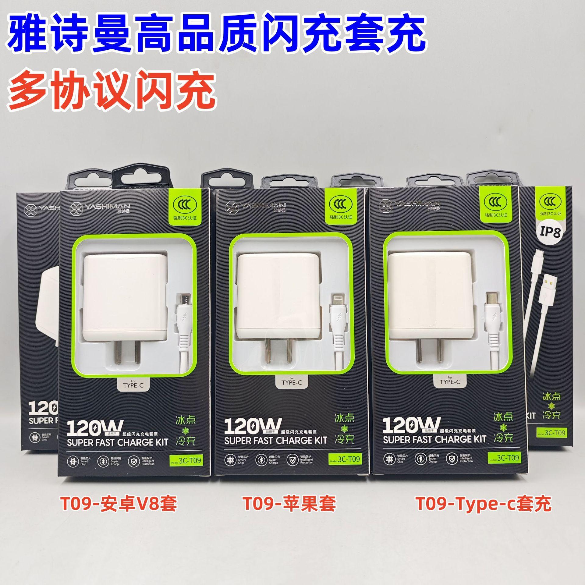 D09-120w-charger + packaging, T09-120w-android v8 charger, T09-120w-apple charger, T09-120w-android tpc charger