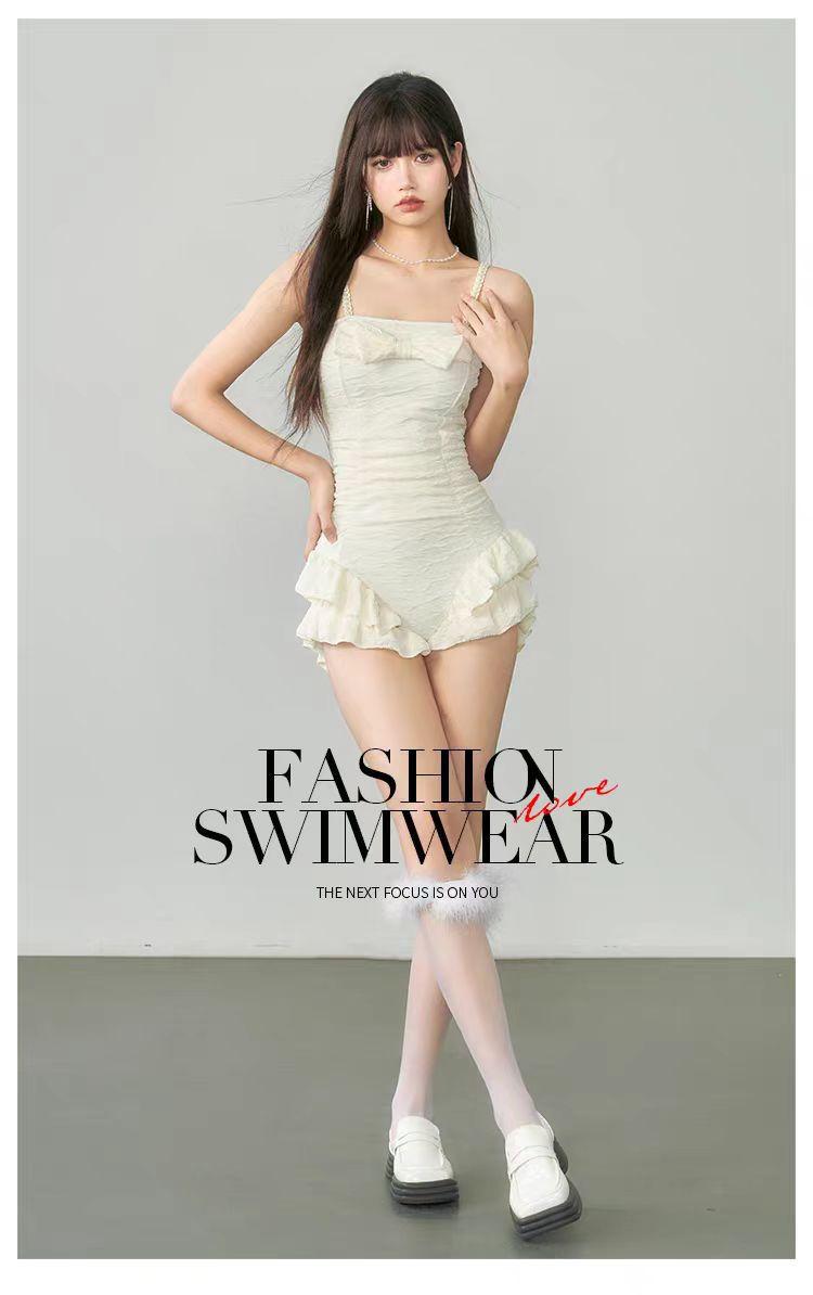 Traje de baño de una pieza para mujer, color sólido, dulce, delgado, sexy, viento puro, vacaciones, traje de baño de aguas termales, venta al por mayor