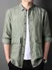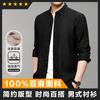Camisa de lino puro 100% para hombre, otoño 2024, nueva chaqueta informal de manga larga para hombres jóvenes y de mediana edad, de una pieza.
