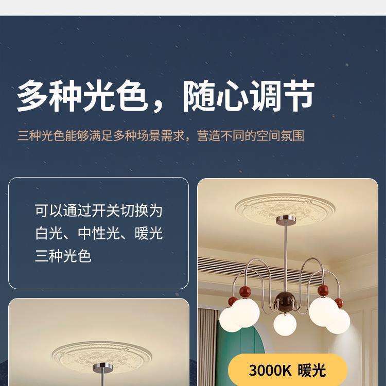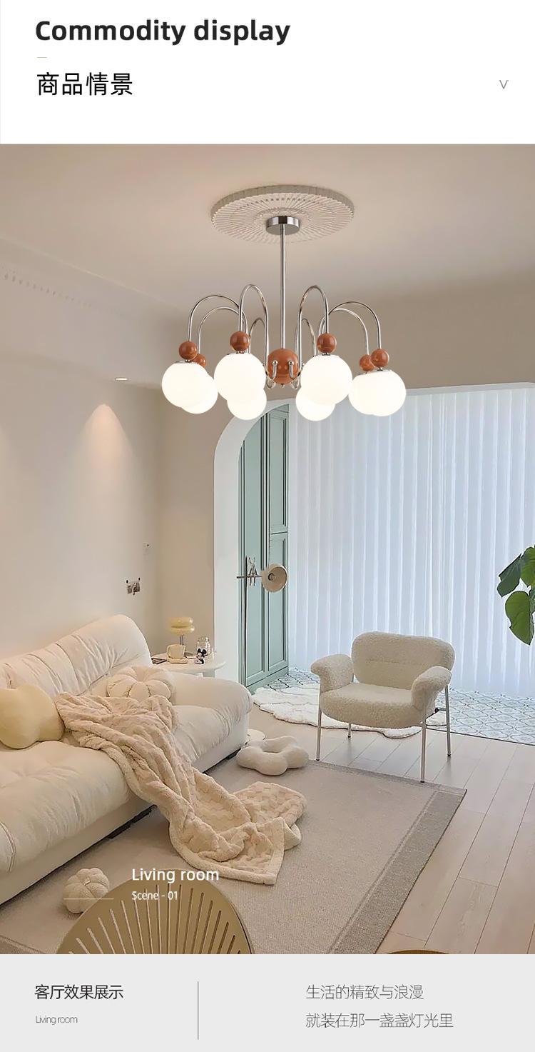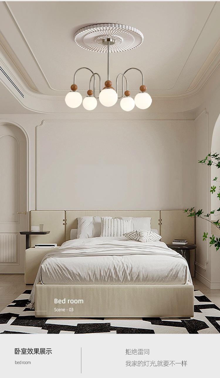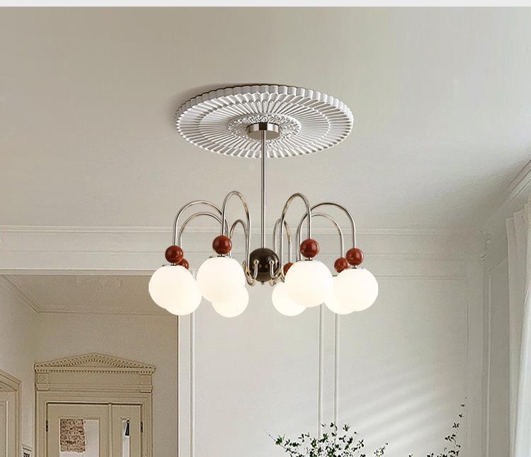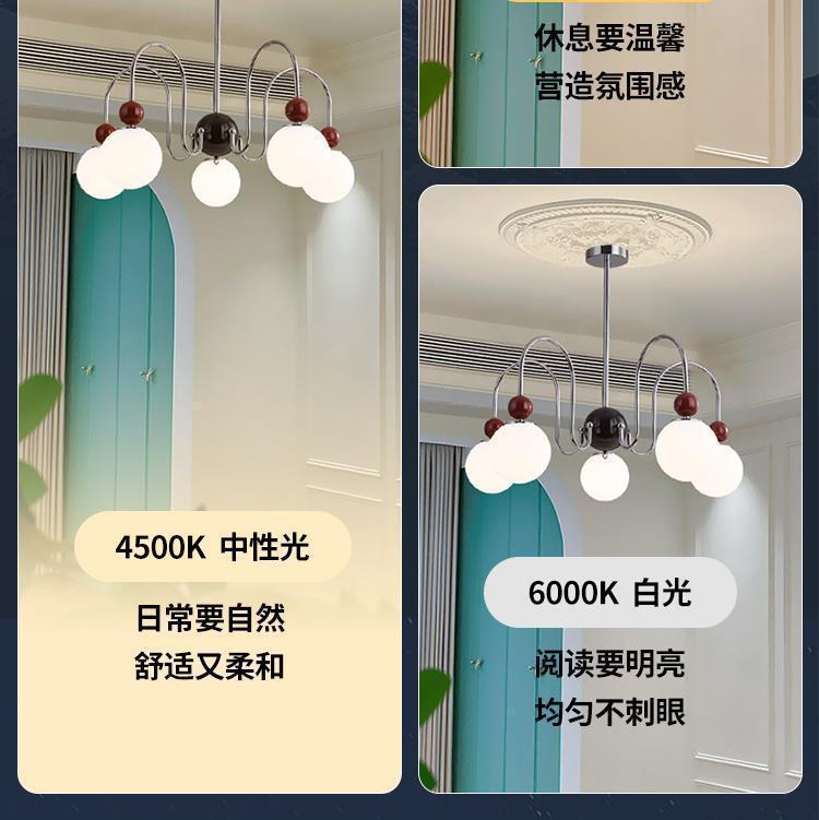 Candelabro de sala de estar de estilo francés de la Edad Media, simple moderno estilo crema, Bauhaus, dormitorio principal, protección para los ojos, lámpara de perlas, lámpara de frijol mágico para restaurante