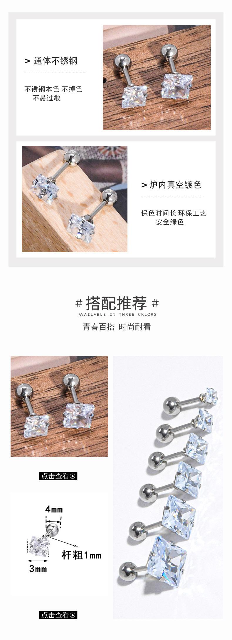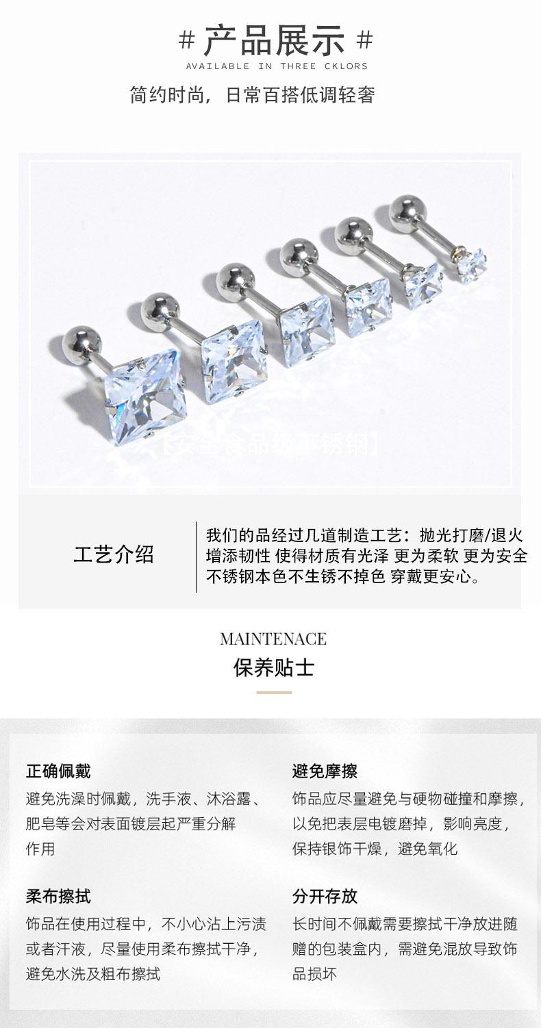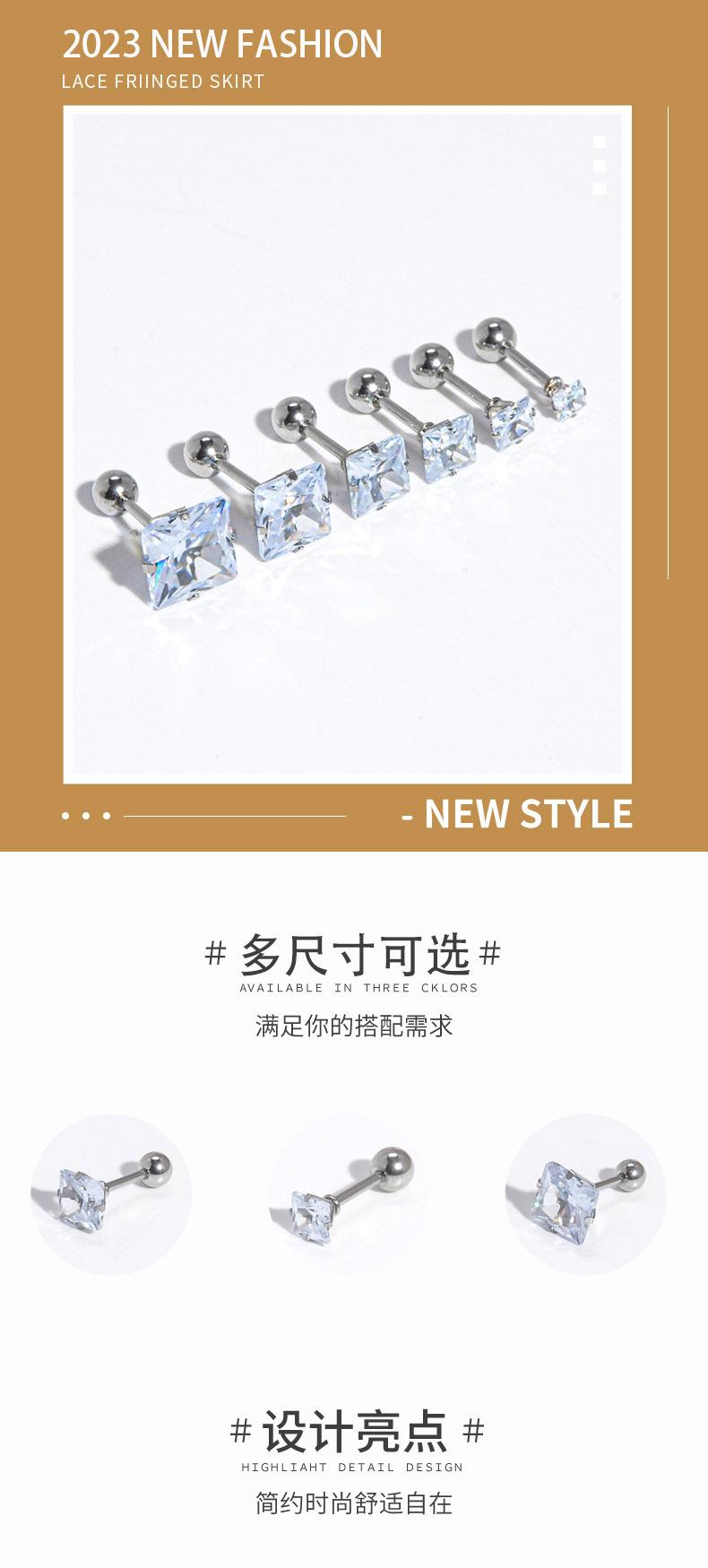 Ventas Directas de Fábrica Aretes Cuadrados de Acero Inoxidable con Tachuelas, Aretes de Aguja Fina para Orejas Perforadas, Aretes para el Cartílago, Joyería en Forma de Diamante, Diseño sin Remoción