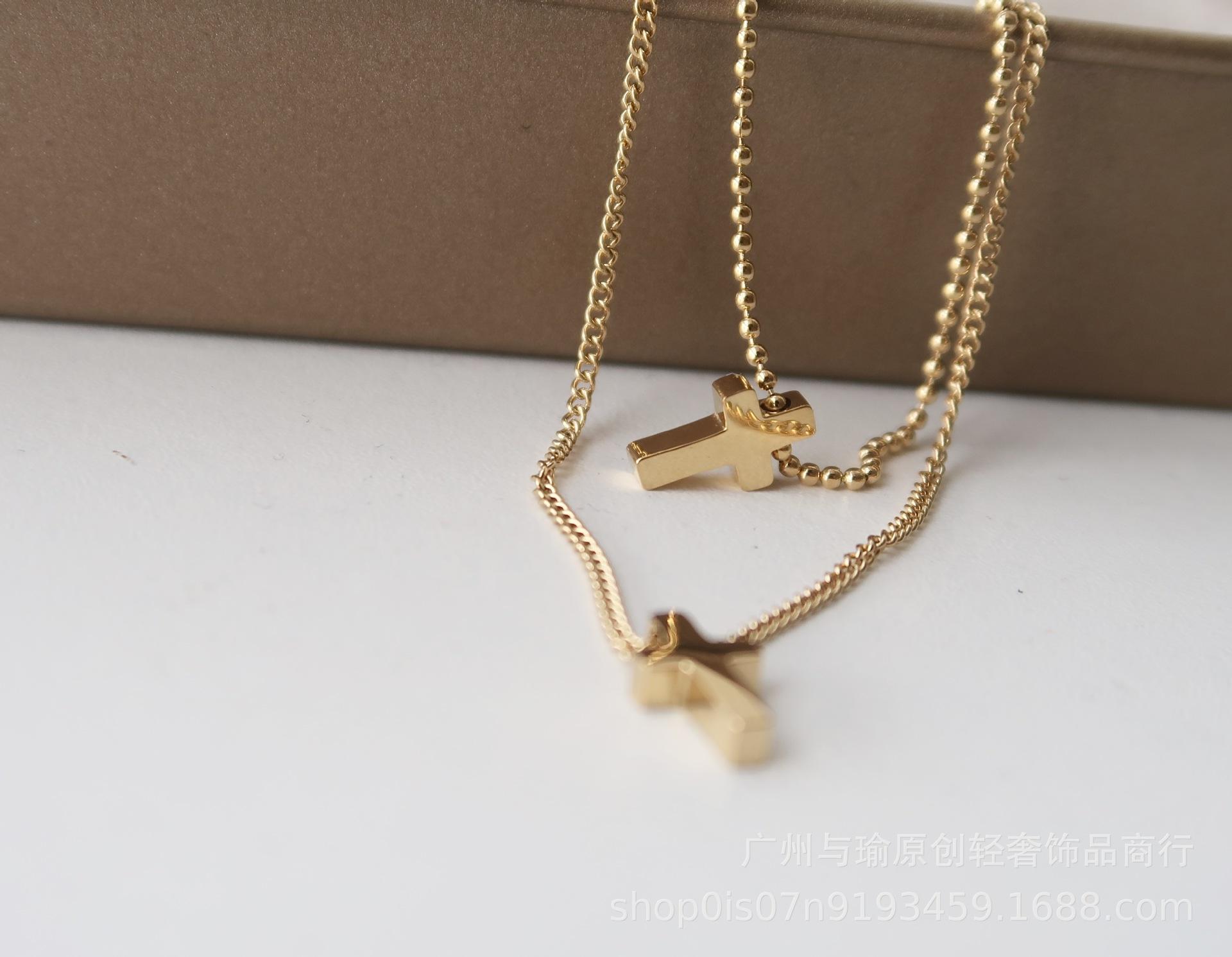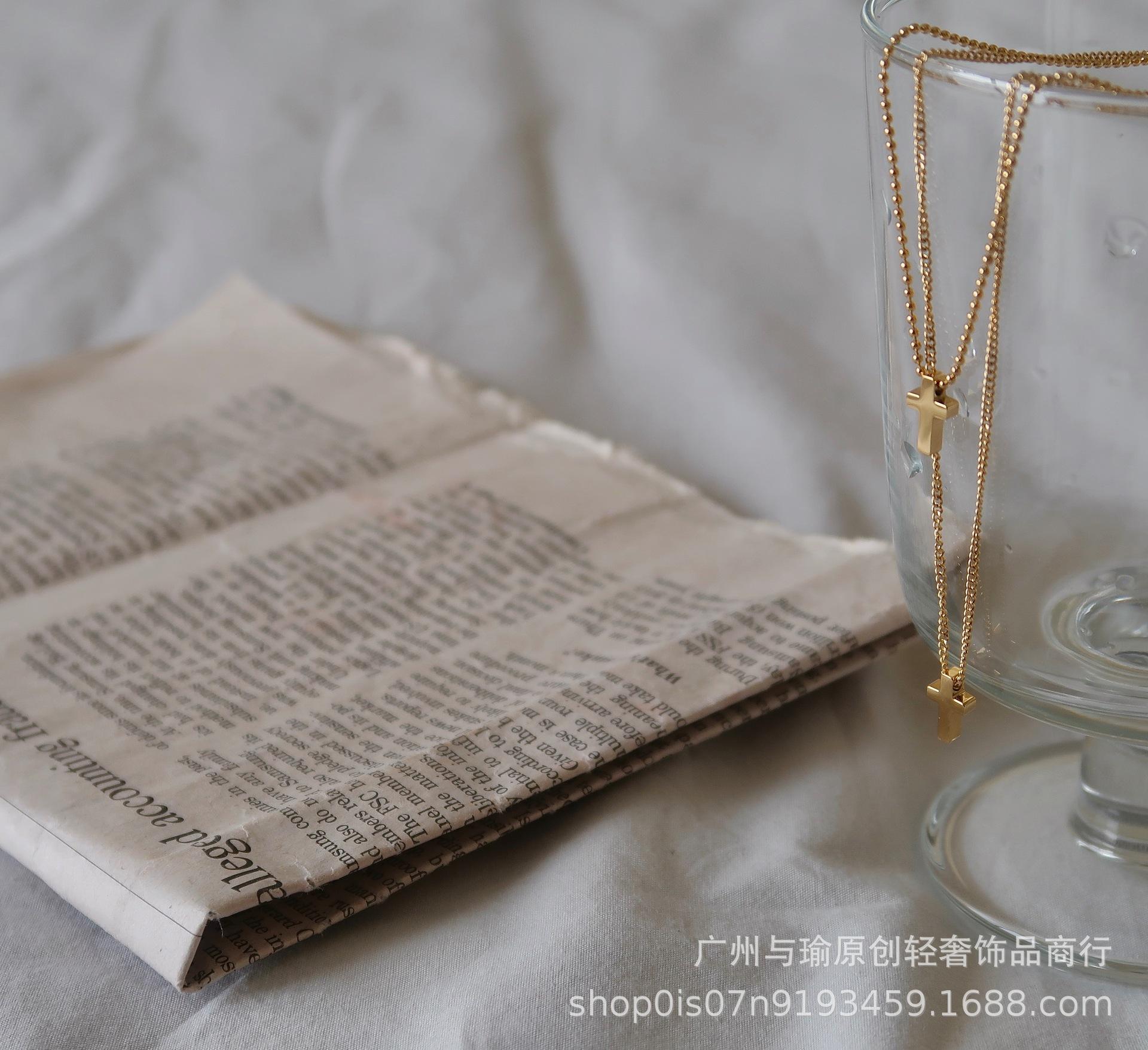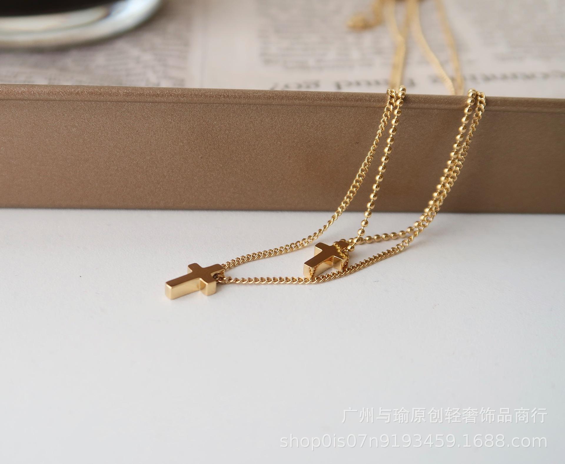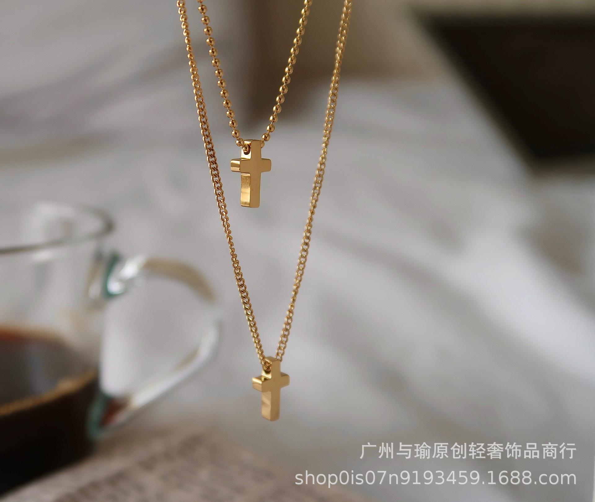 Collar con colgante de cruz de Yu Jewelry para mujer, gargantilla de doble cadena, cadena de clavícula de acero de titanio europeo y americano de alta calidad.