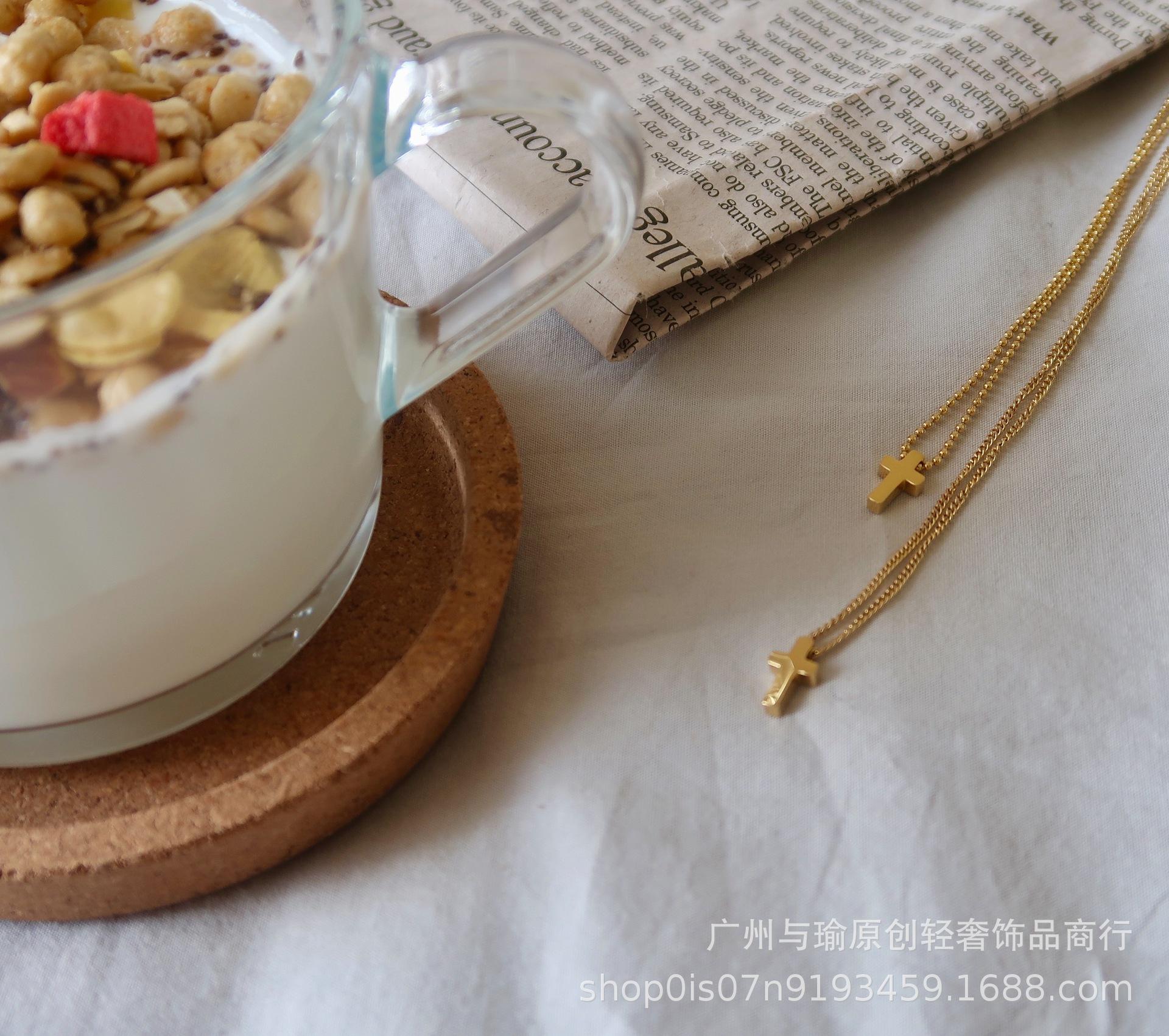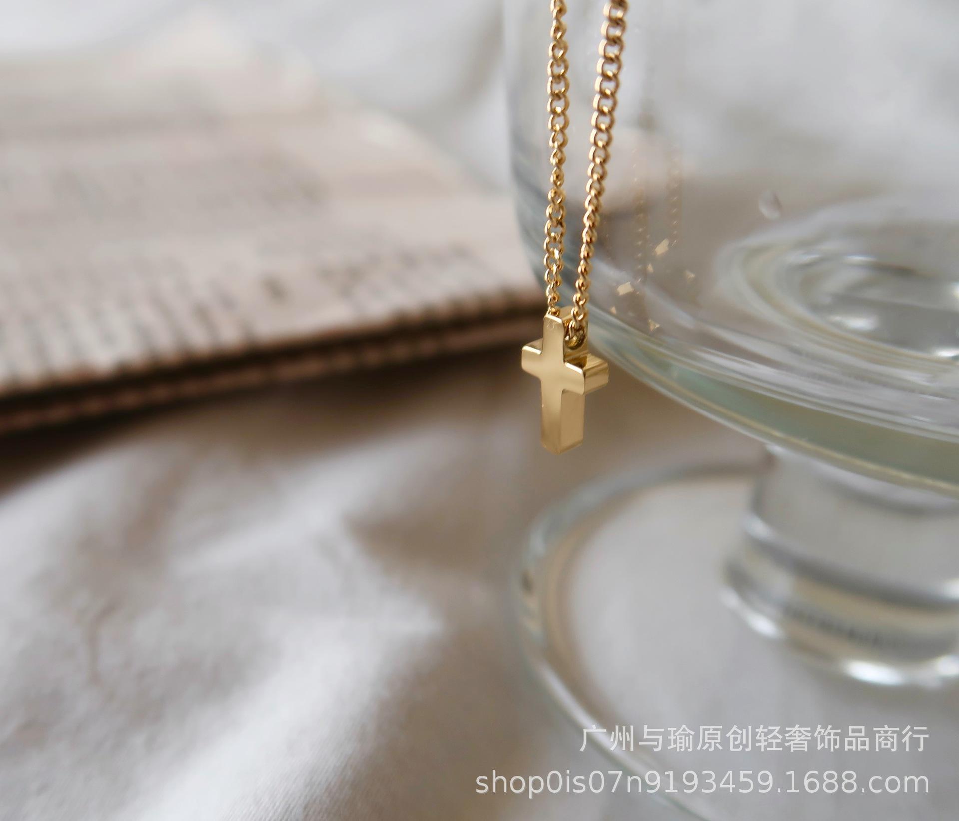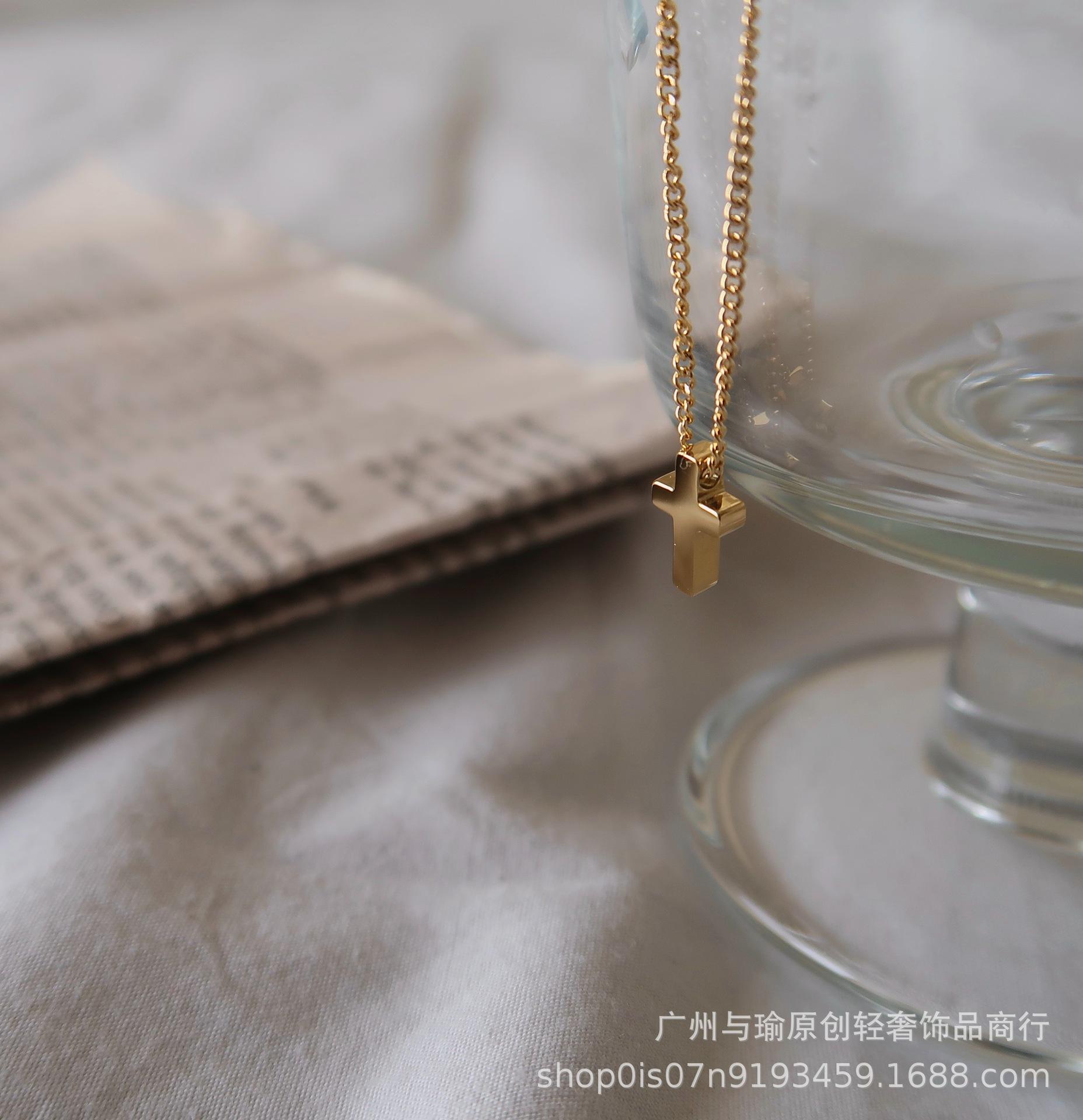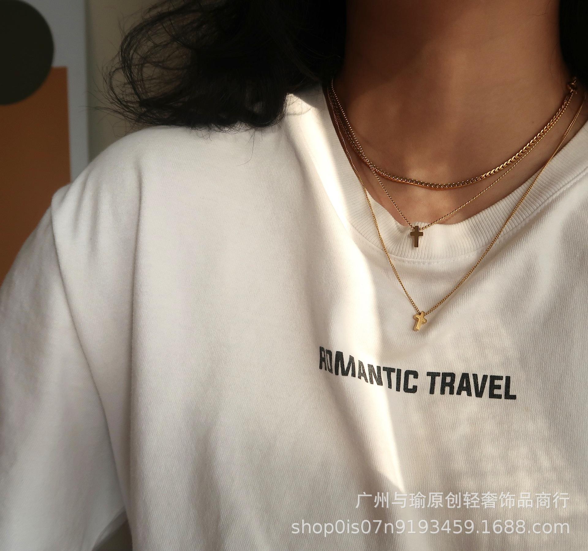 Collar con colgante de cruz de Yu Jewelry para mujer, gargantilla de doble cadena, cadena de clavícula de acero de titanio europeo y americano de alta calidad.