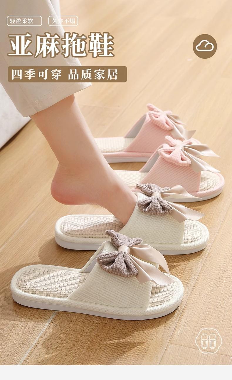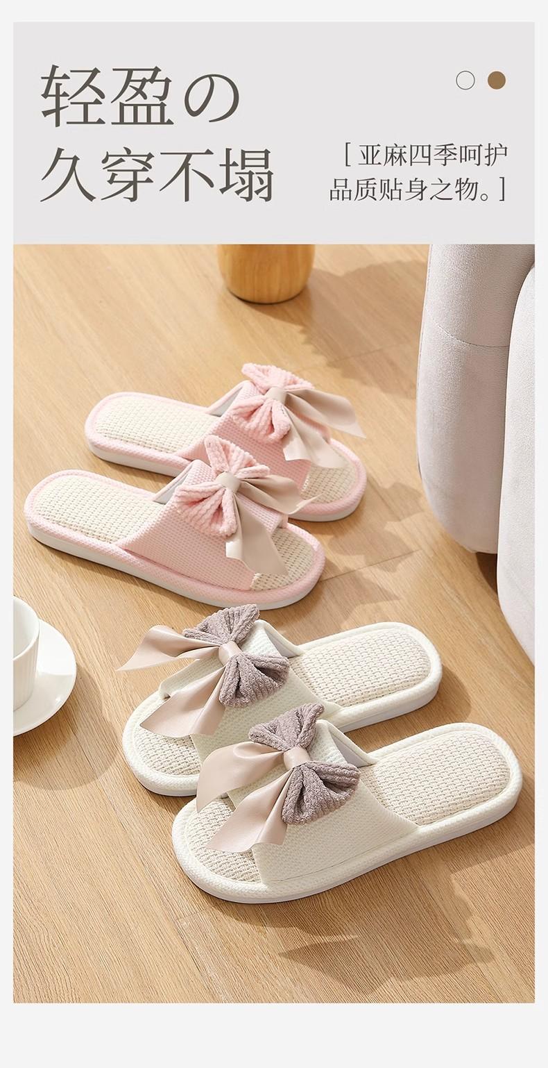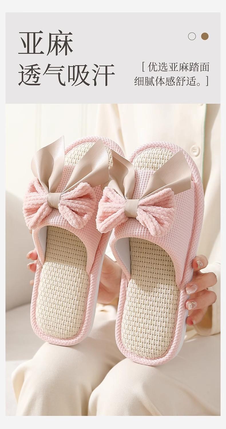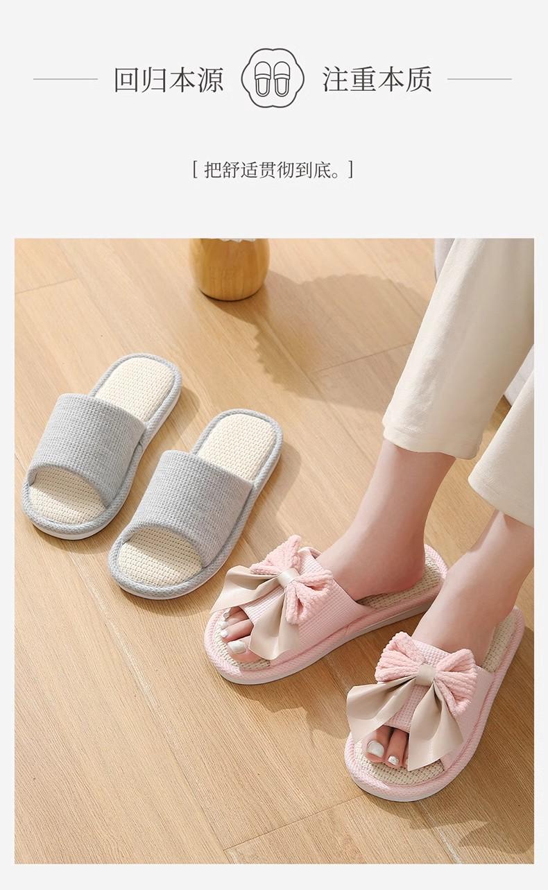 Pantuflas de Lino con Lazo para Mujer Verano Interior Hogar Piso Absorbente de Sudor Parejas Sandalias de Algodón Cuatro Estaciones Venta al por Mayor