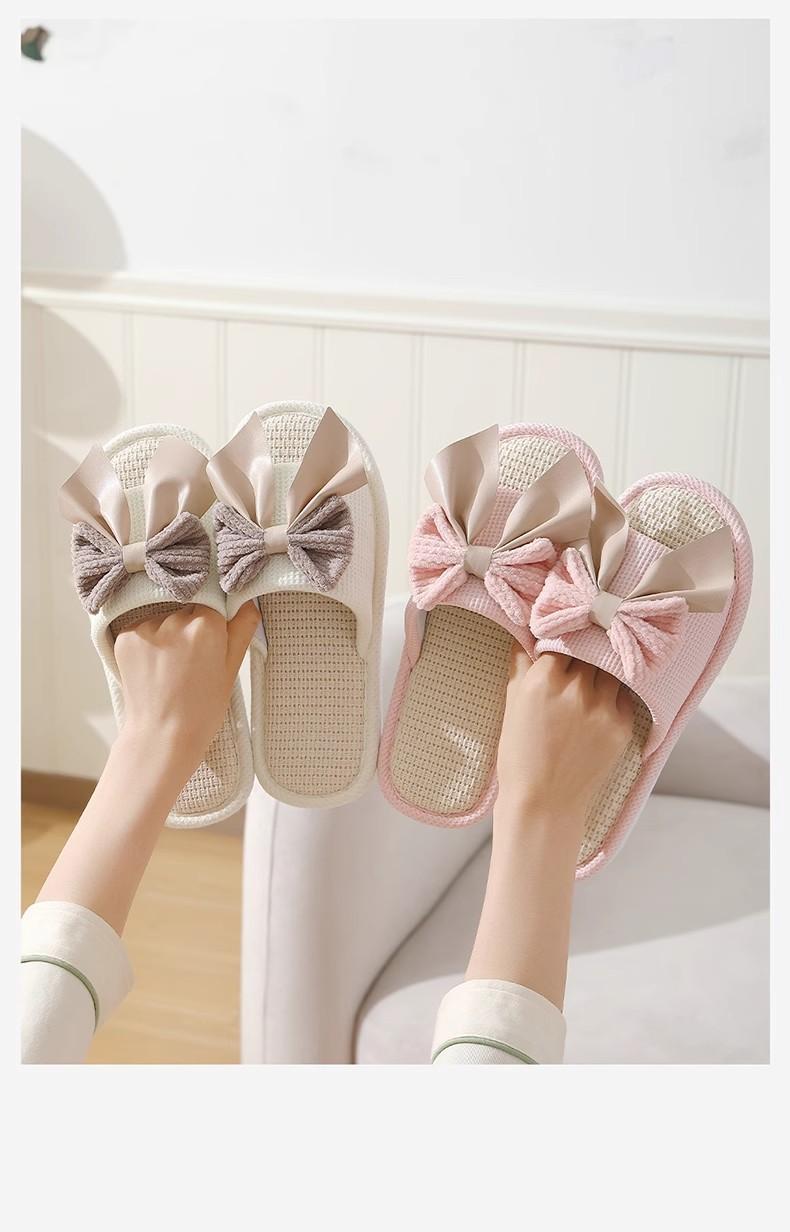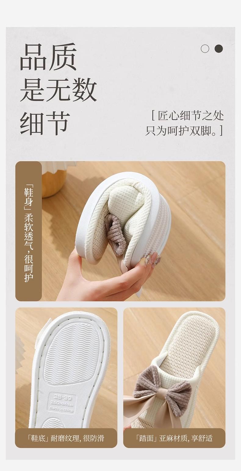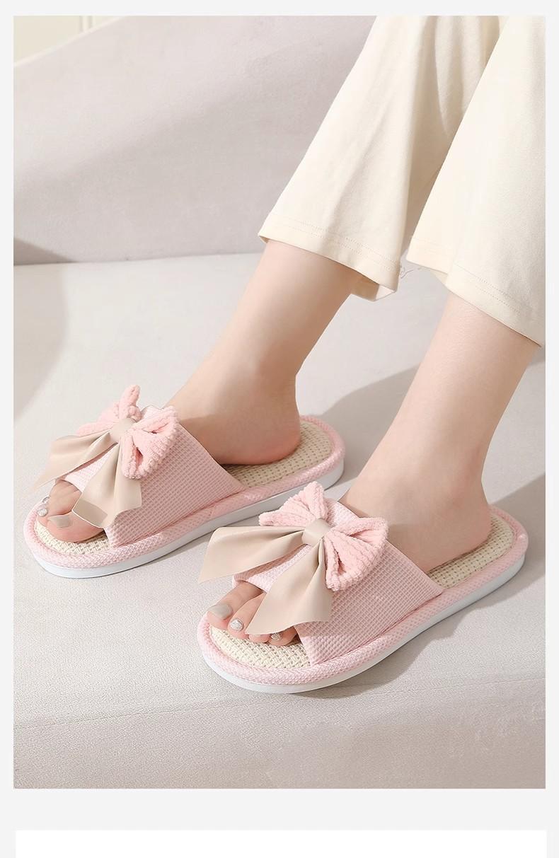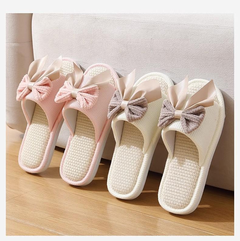 Pantuflas de Lino con Lazo para Mujer Verano Interior Hogar Piso Absorbente de Sudor Parejas Sandalias de Algodón Cuatro Estaciones Venta al por Mayor