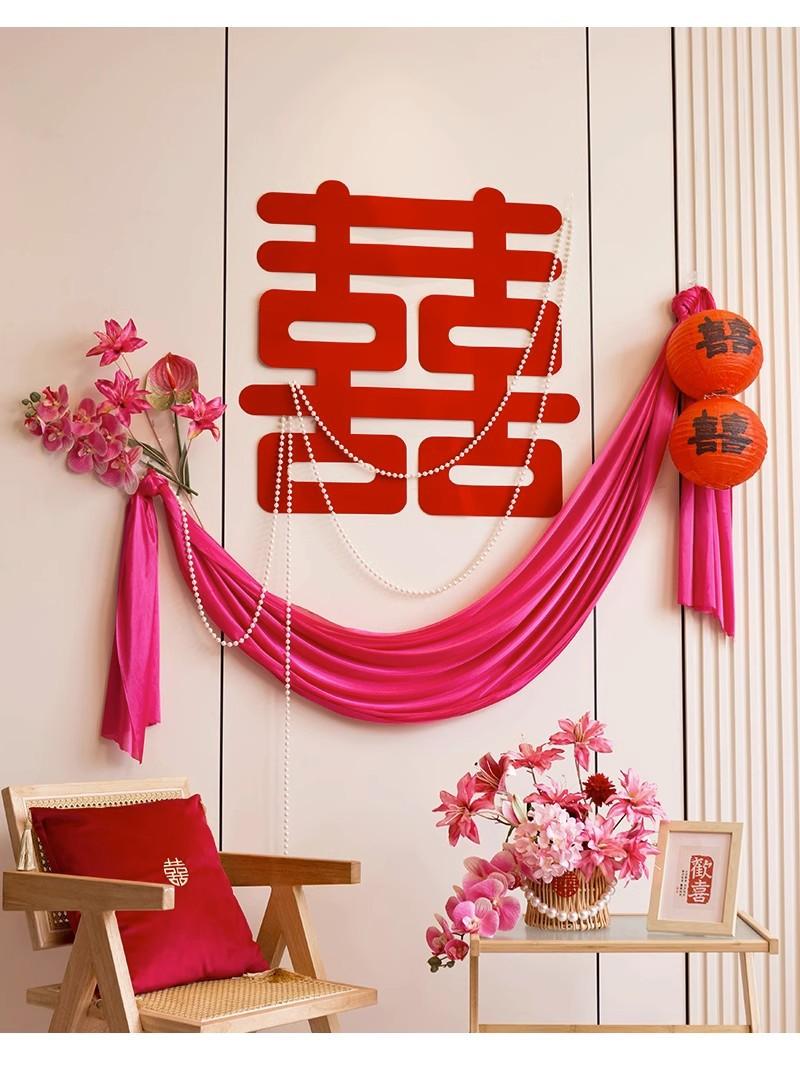 Set de Arreglo para Habitación de Boda Decoración para Habitación de Boda Sala de Estar de Casa Nueva Dormitorio Hombre Mujer Adhesivo de Personaje de Boda Pared de Fondo Avanzado