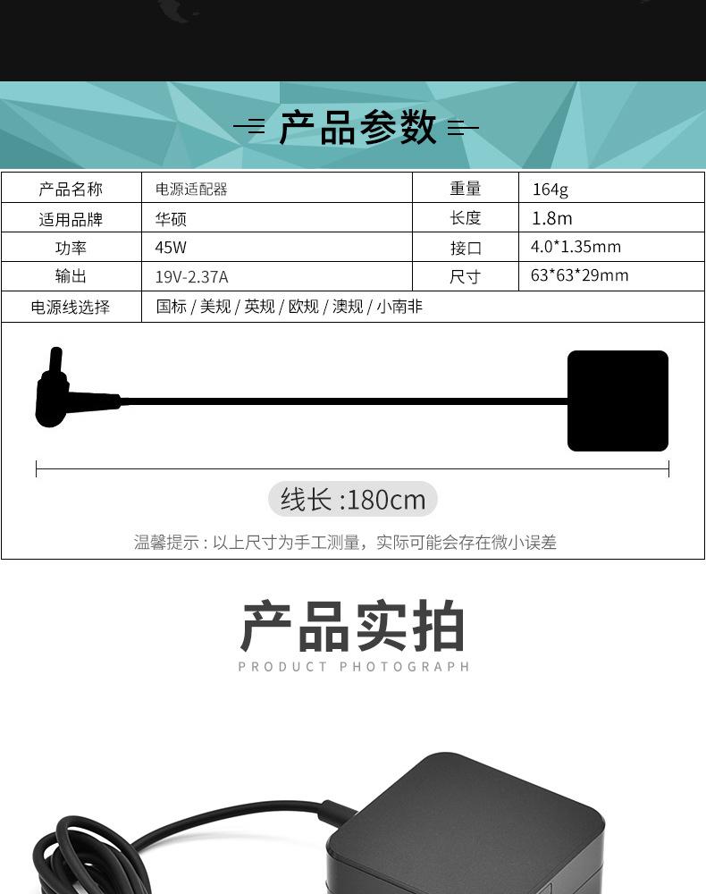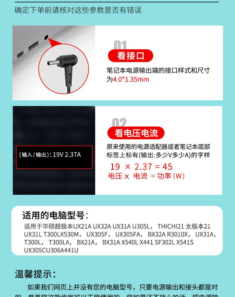 Adecuado para Adaptador de Corriente para Laptop Asus 45W 19V2.37A Cargador de Computadora 4.0*1.35mm