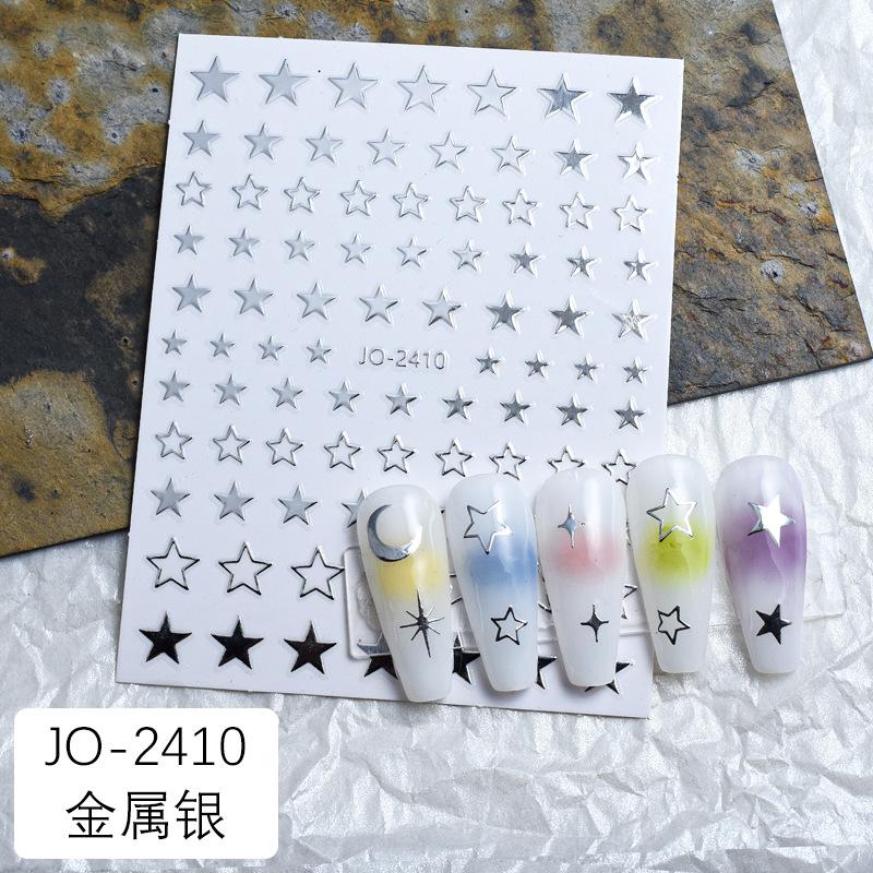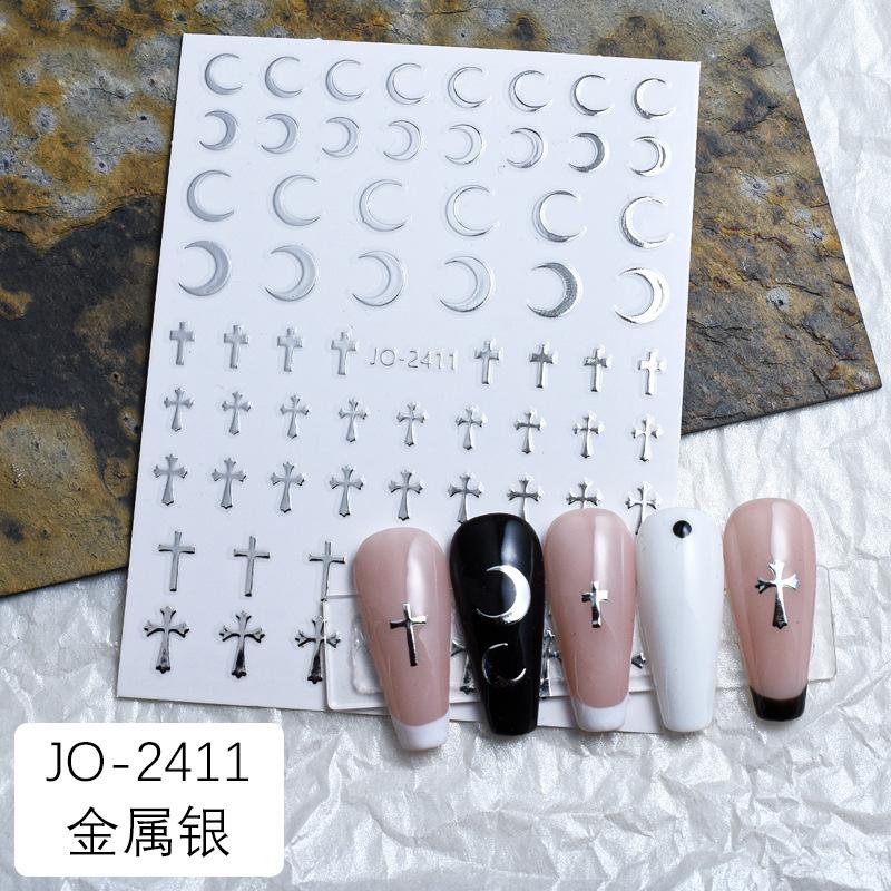 Pegatinas para decoración de uñas de metal, plateadas, huecas, con forma de estrella de amor, luna, espejo de metal, cruz plateada, calcomanía autoadhesiva 3D