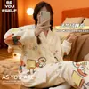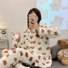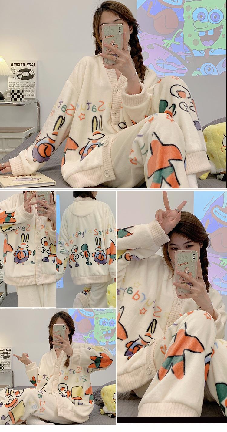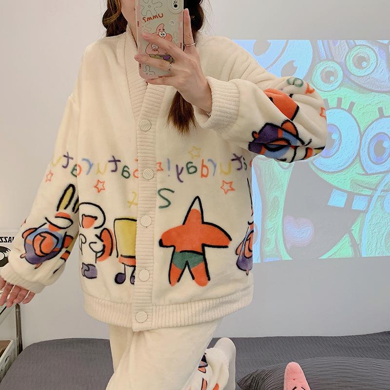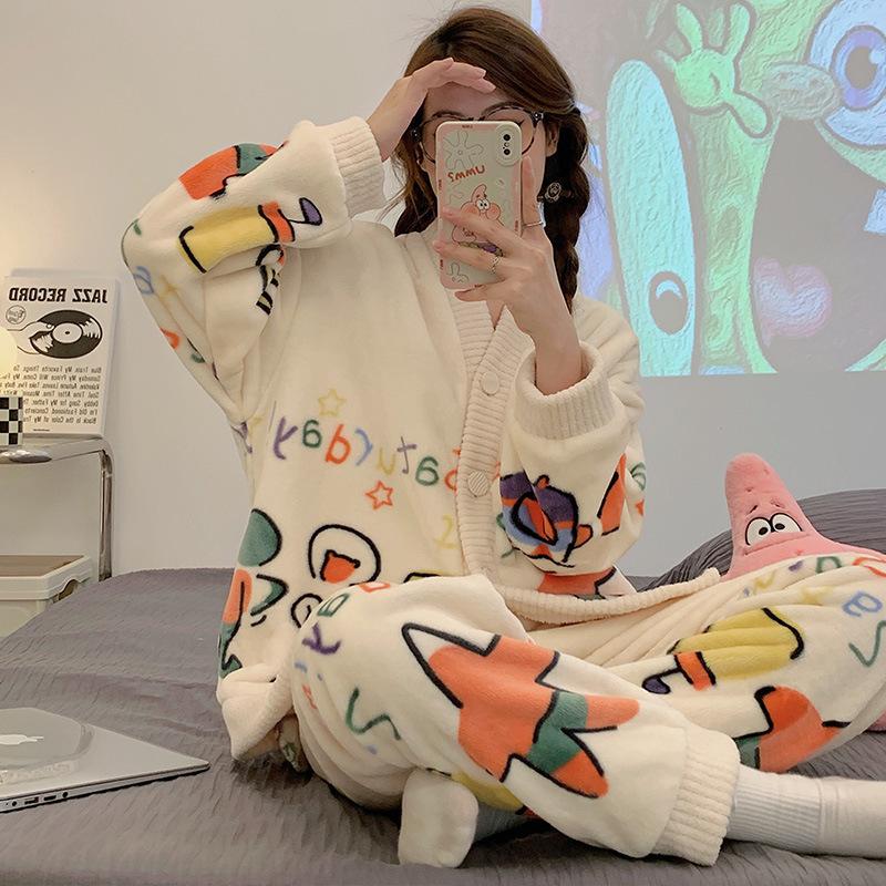 Conjunto de Pijama de Franela de Dibujos Animados Personalizado para Mujer en Otoño e Invierno Cárdigan Estilo Princesa Engrosado para Usar Ropa de Casa Cálida y Dulce