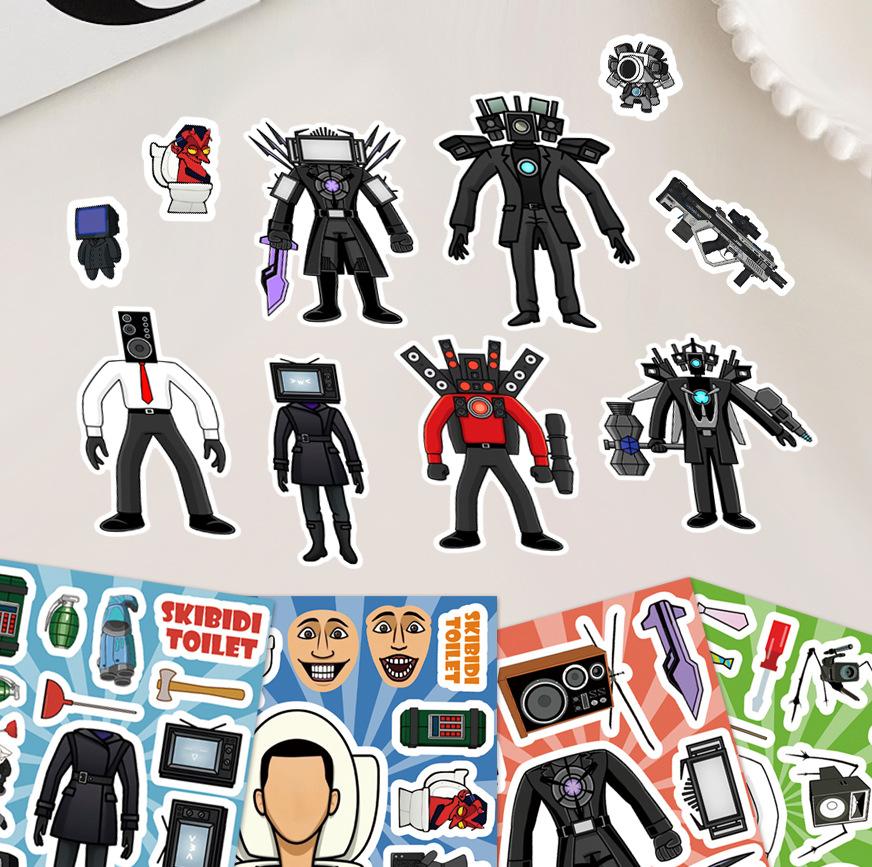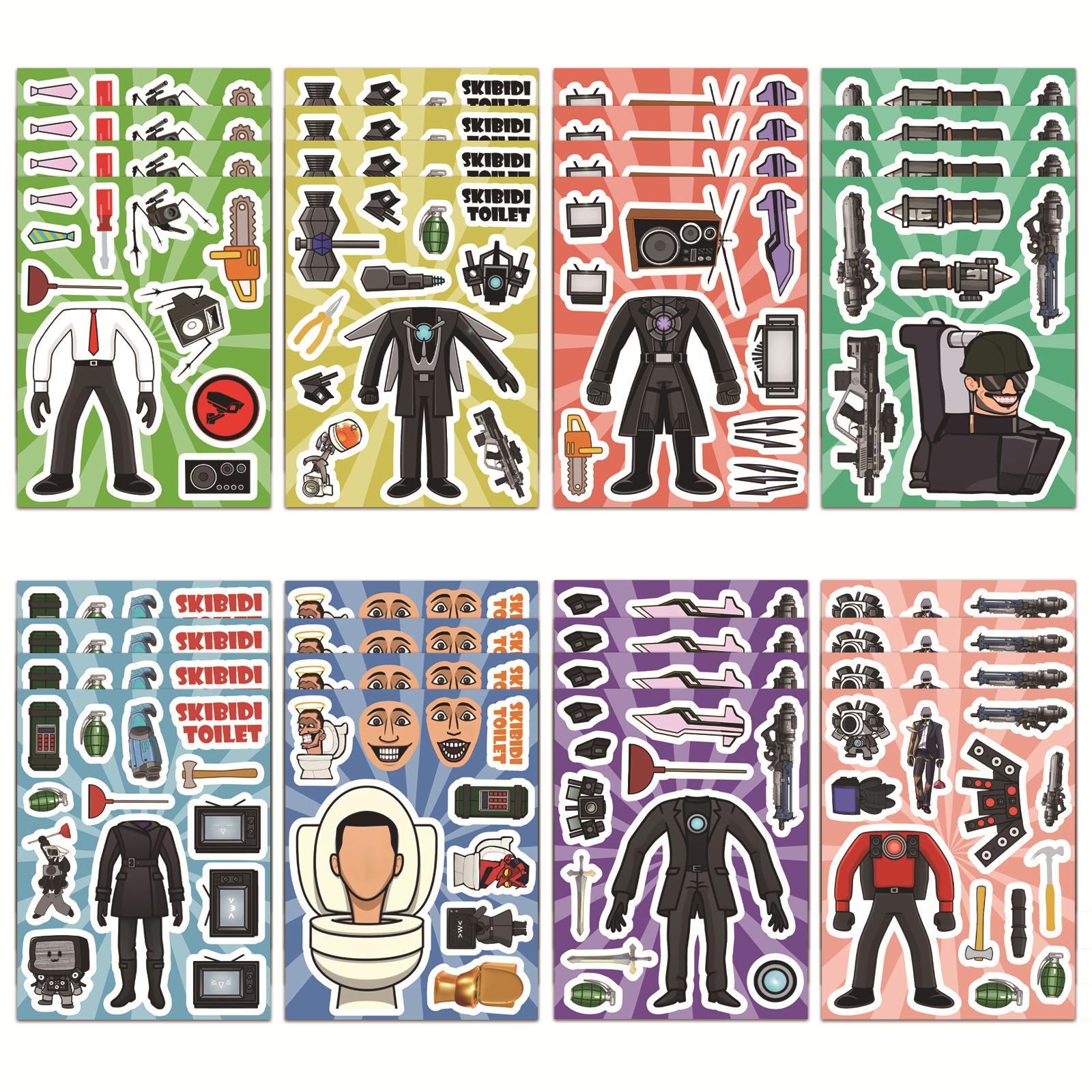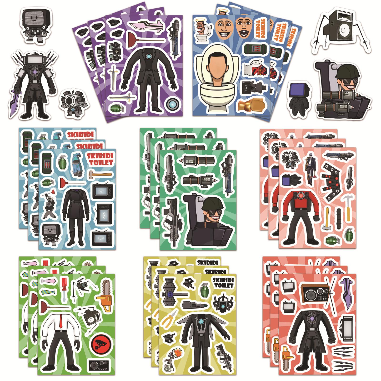 Nuevas 8 pegatinas de rompecabezas para monitor de batalla de inodoro, juguetes educativos de bricolaje, pegatinas para hacer una cara