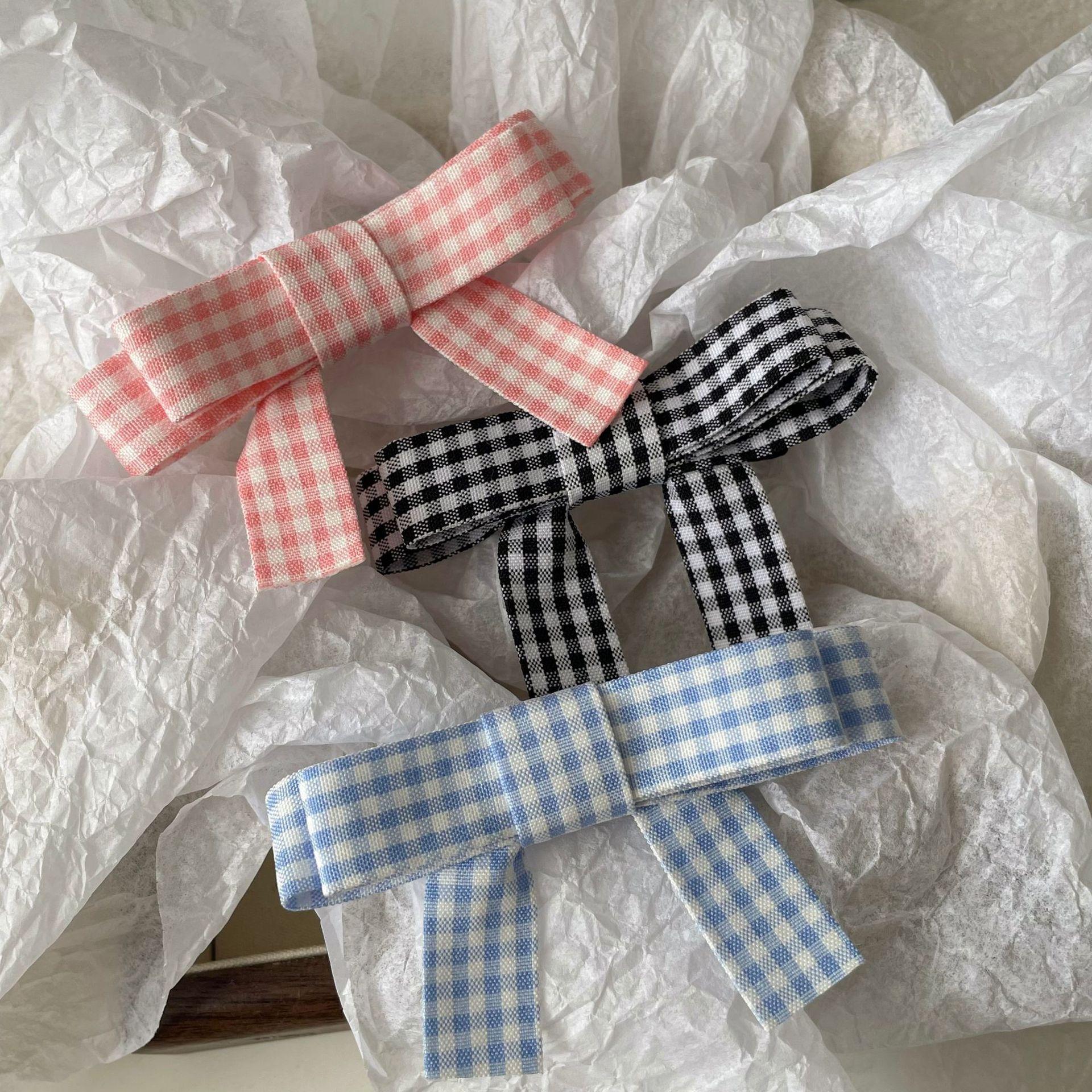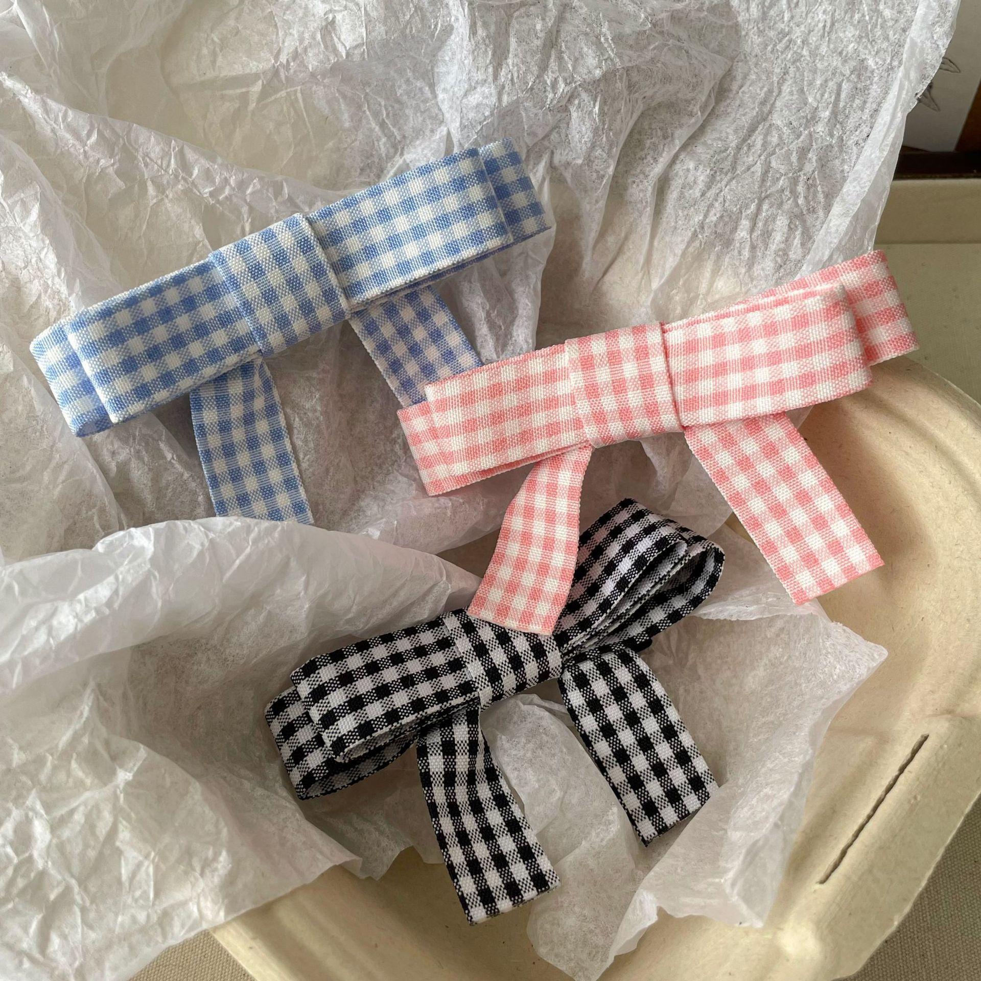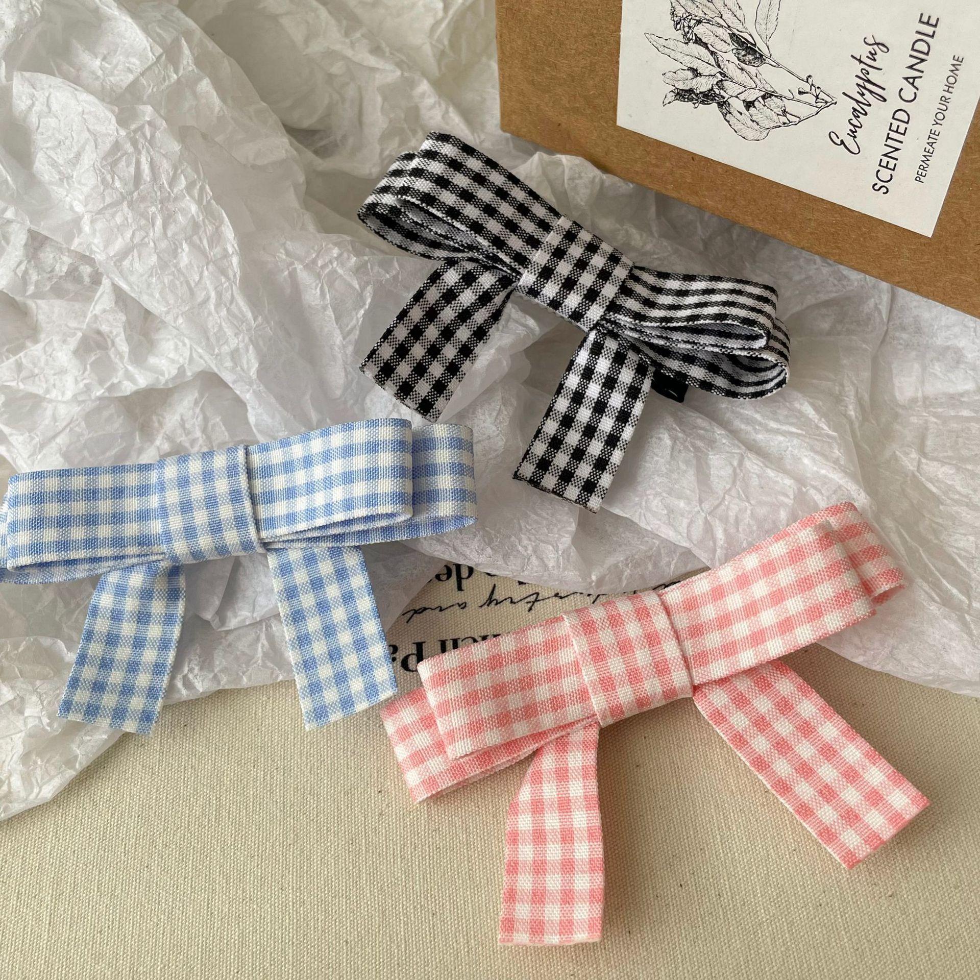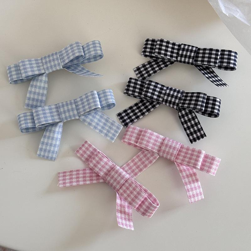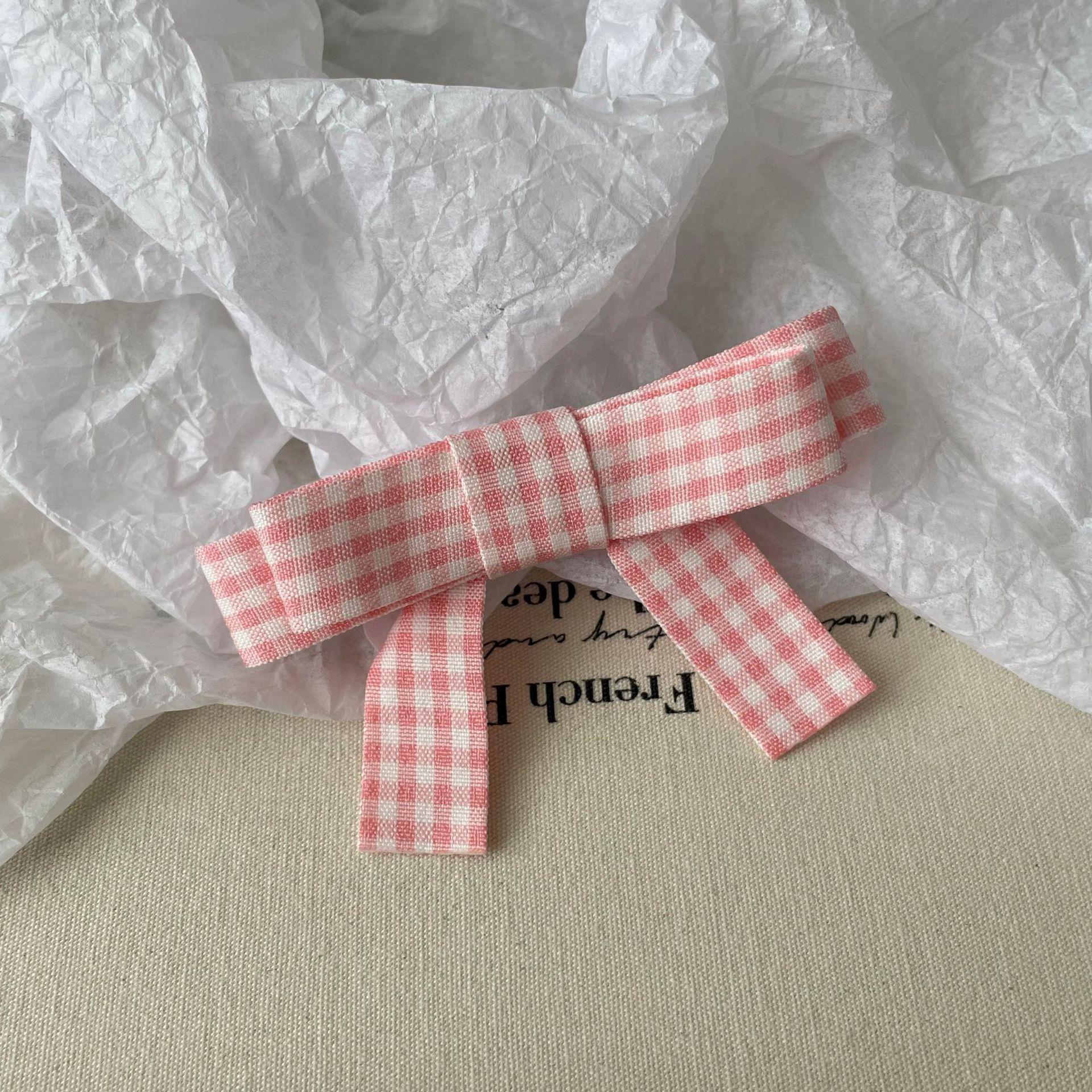 Horquilla de flequillo con lazo rosa para chica dulce estilo coreano, horquilla con pinza lateral a cuadros, accesorios para el cabello con pinza superior