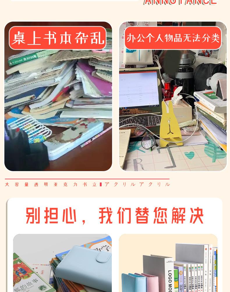 Soporte de libros de acrílico, soporte de lectura, soporte para libros, estantería de escritorio, escritorio fijo, artefacto de almacenamiento de libros, estante transparente