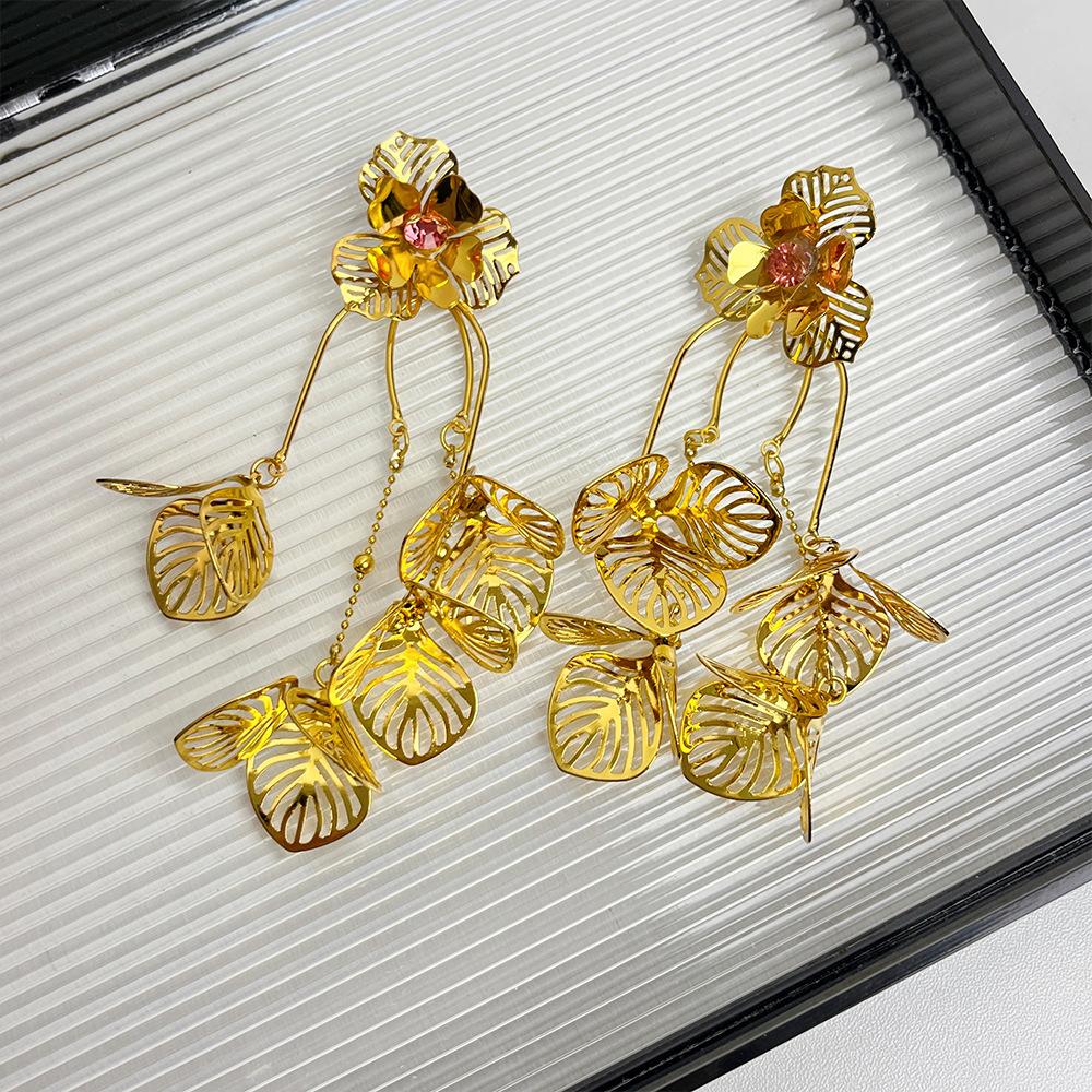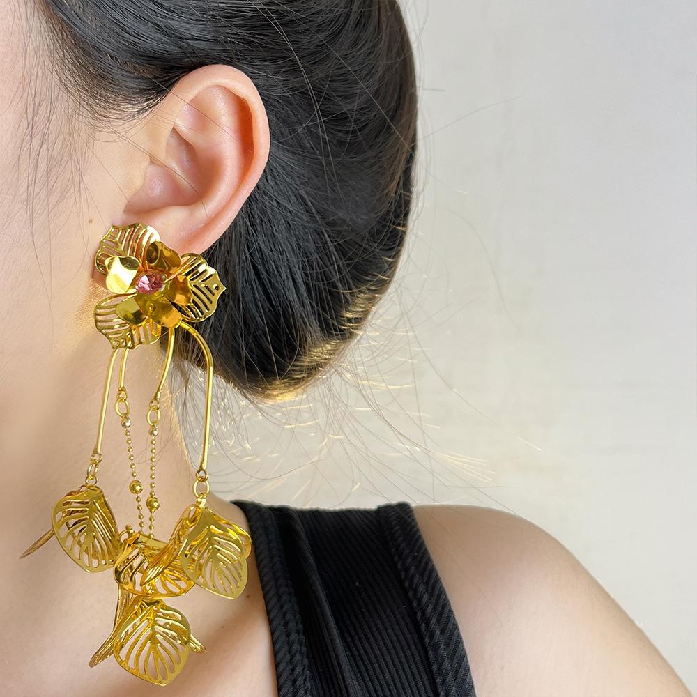 Golden Flower Hollow Leaves Tassel Earrings Z-2202