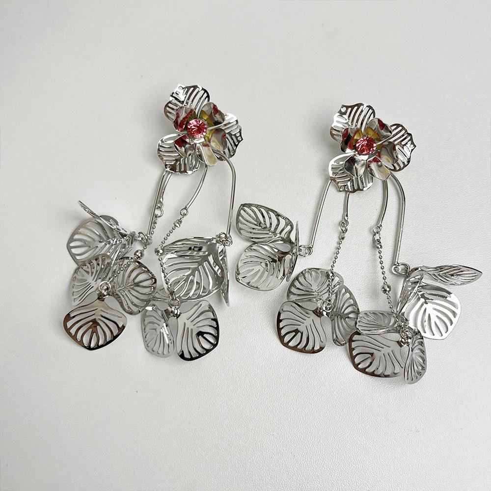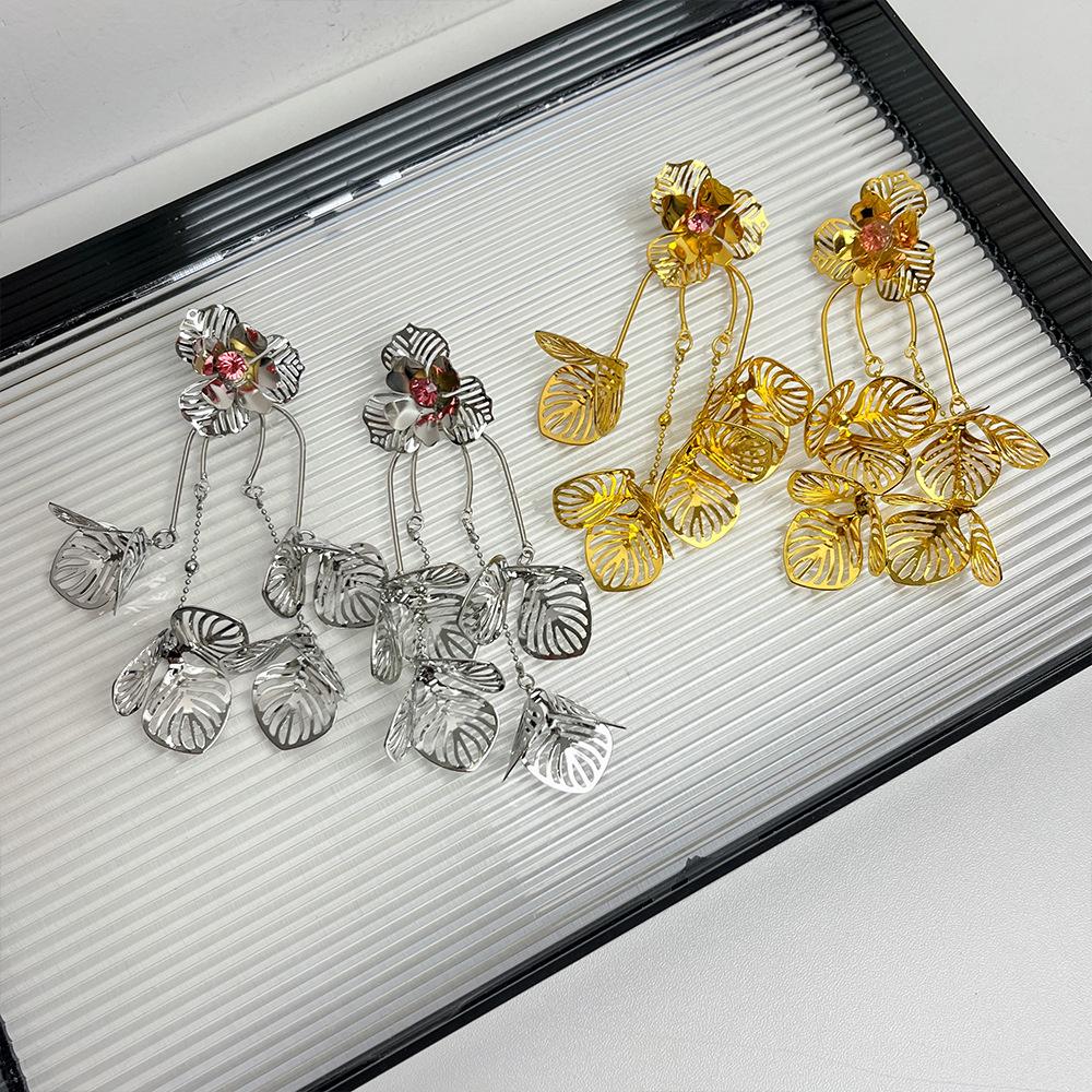Golden Flower Hollow Leaves Tassel Earrings Z-2202, silver flower hollow leaves tassel earrings Z-2203
