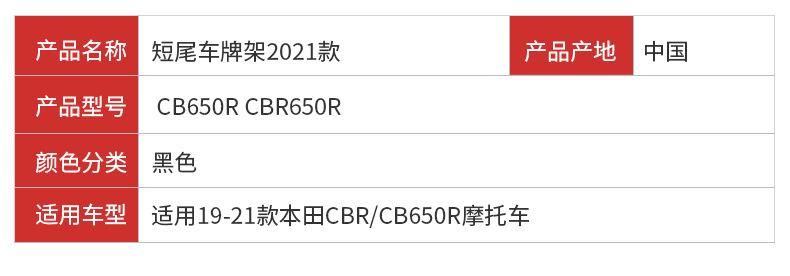 Adecuado para Honda Cb650R Cbr650R Portaplaca Modelo 2021 Soporte Luz de Matrícula Motocicleta Cola Corta Compatible con Modelo 21