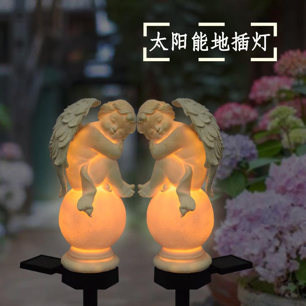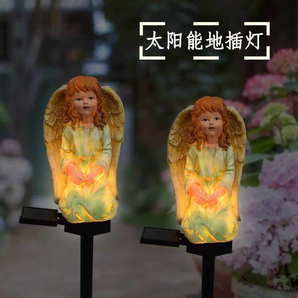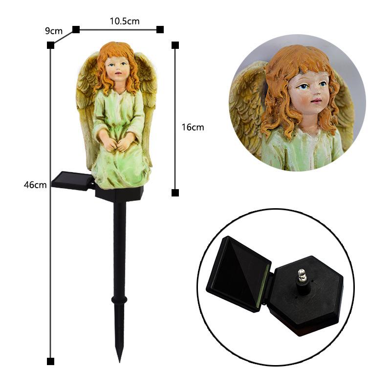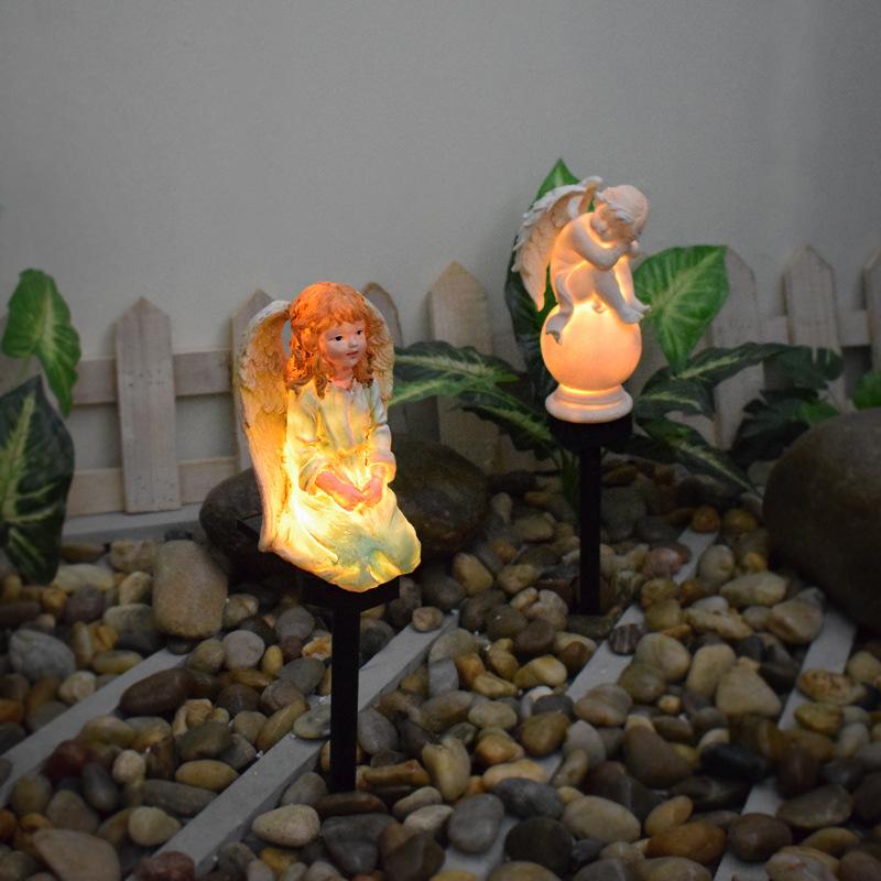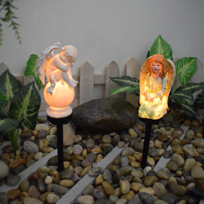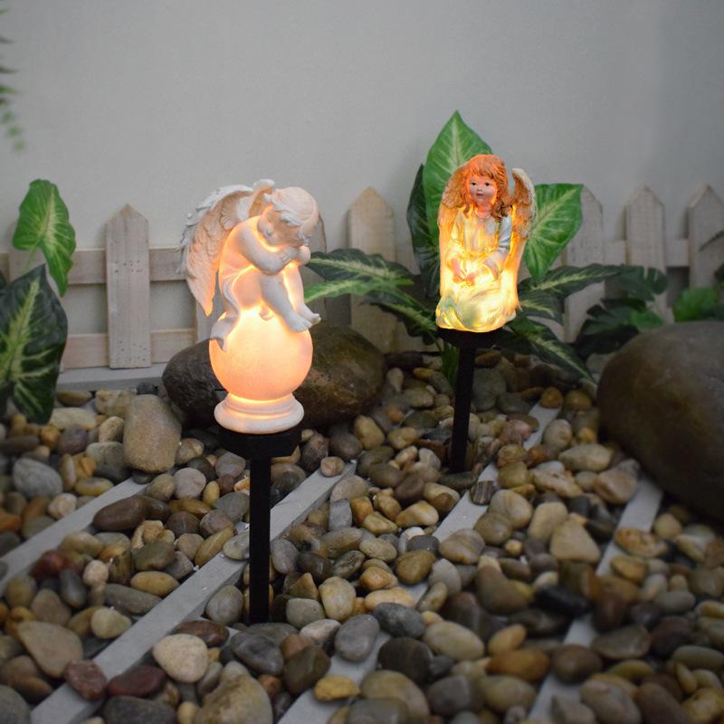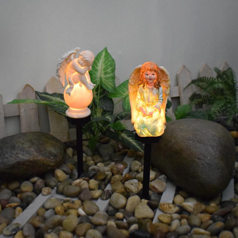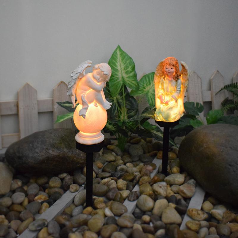 Nueva lámpara solar para jardín al aire libre, lámpara de resina con forma de ángel para decoración de casa, jardín, paisaje, animal, lámpara de césped para suelo.